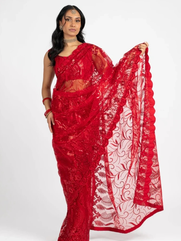 163This saree is BRAND NEW. Comes with petticoat. BLOUSE IS NOT INCLUDED. I am selling the BLACK colour. *THE RED PHOTOS ARE JUST FOR REFERENCE* I had a wedding to attend but ended up wearing something else so I’m selling it cause I never wore it and probably never will. Price is non-negotiable.