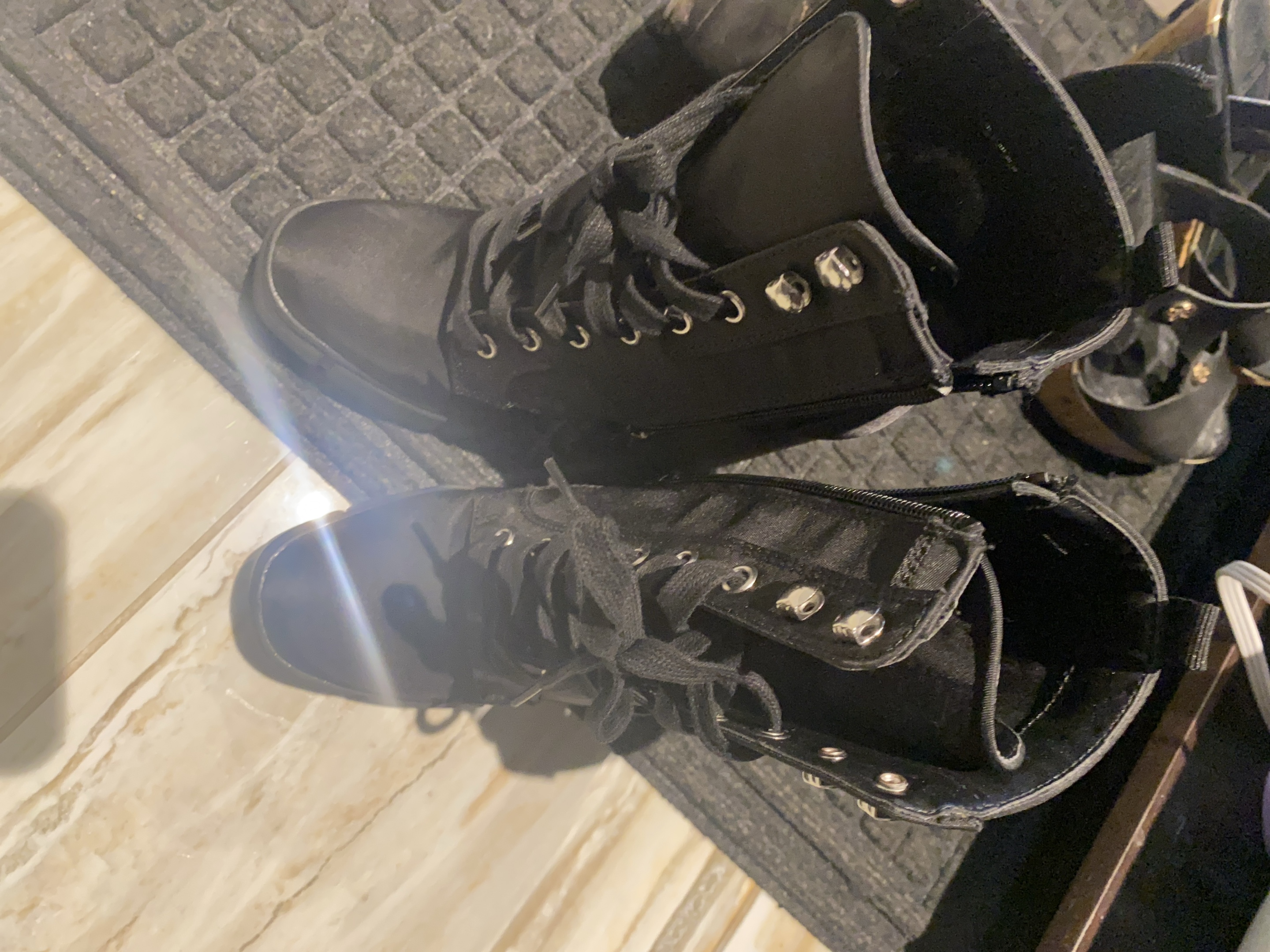 10Selling a pair of black lace-up ankle boots. They are in good condition and have a stylish look. Perfect for adding a bit of edge to your outfit!
