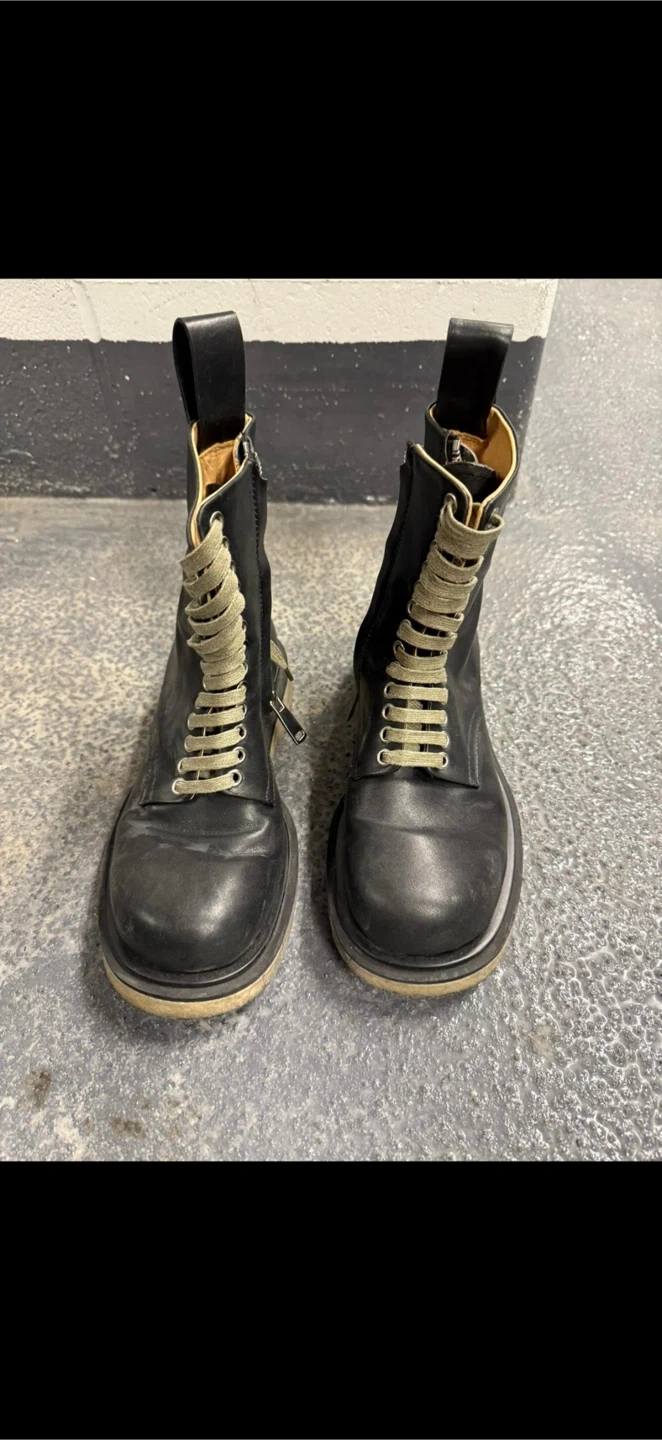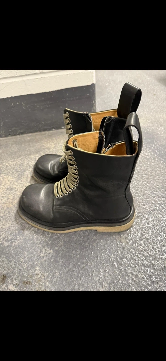 162Selling a pair of lace-up boots in black. They have a unique and stylish design that stands out. Perfect for adding an edgy touch to your wardrobe. Please take a look at the pictures!