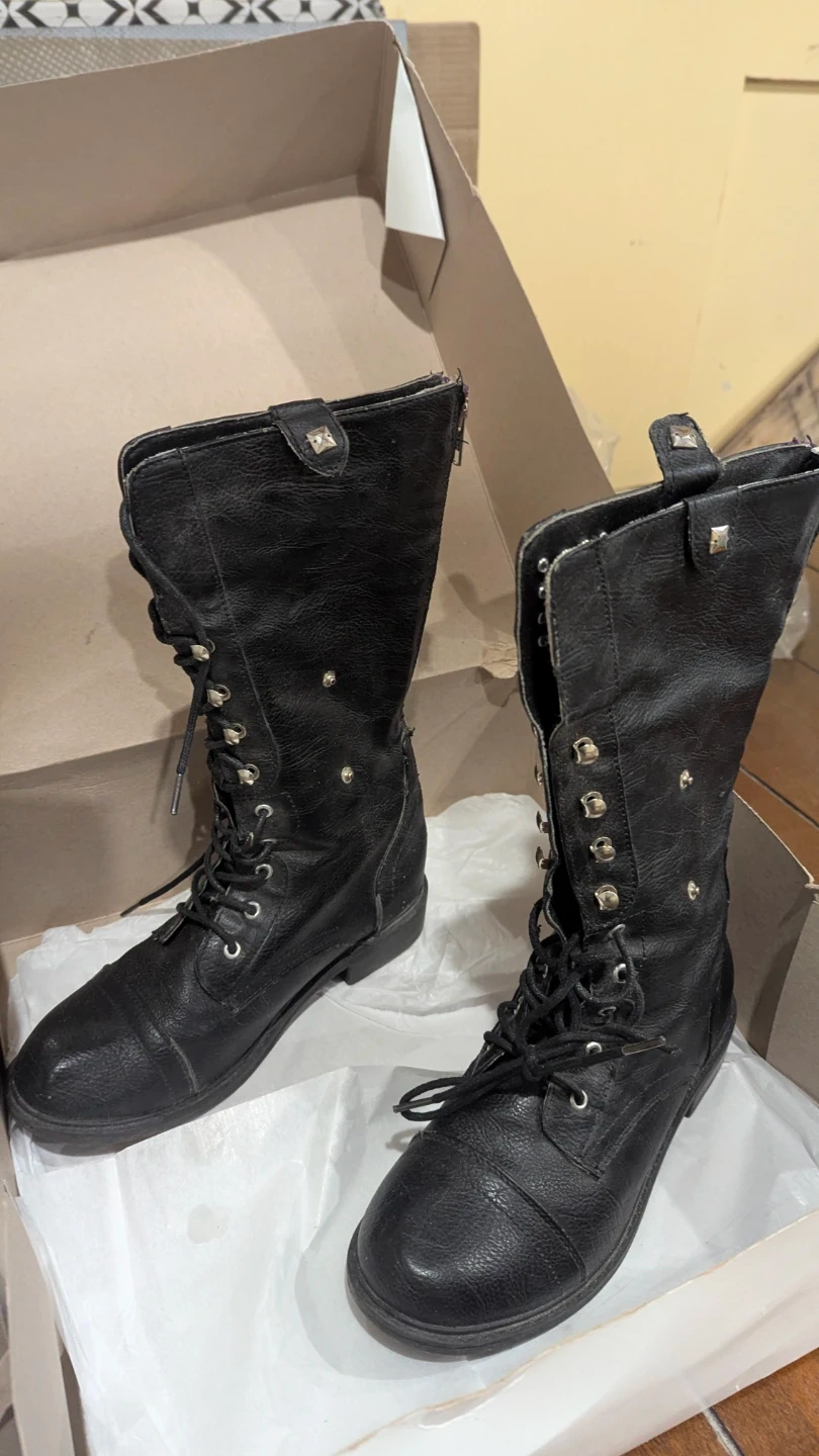 20Selling a pair of black lace-up boots. They're in good condition and come with the original box!