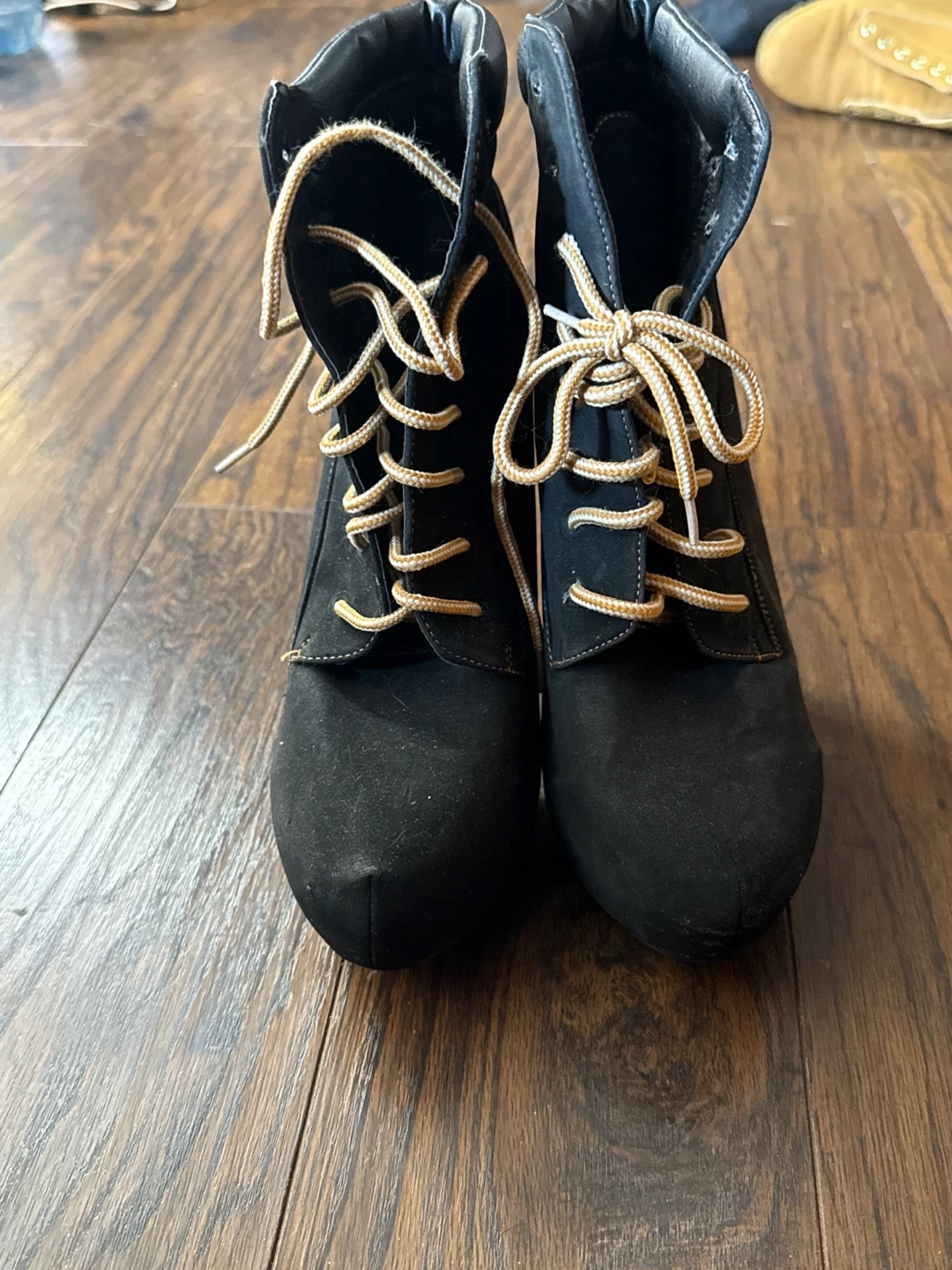 65Selling a pair of black lace-up booties size 10. Perfect for adding a bit of edge to your outfit! Barely worn Price is negotiable! Dm me for more info if interested.