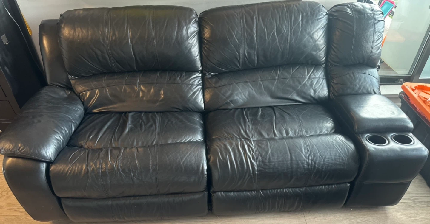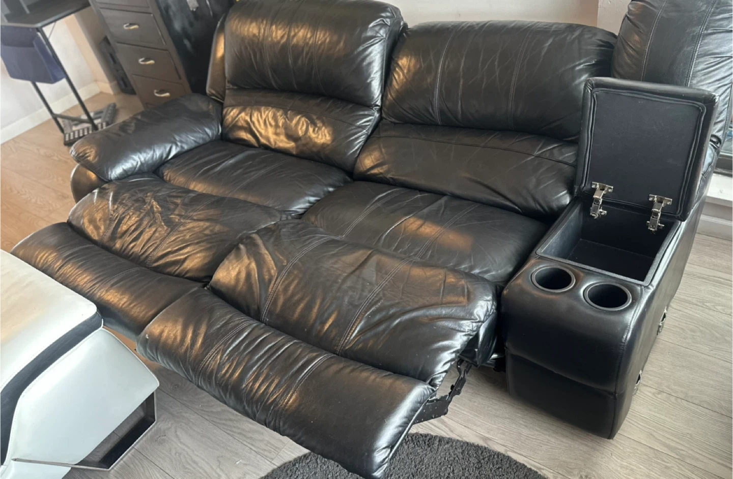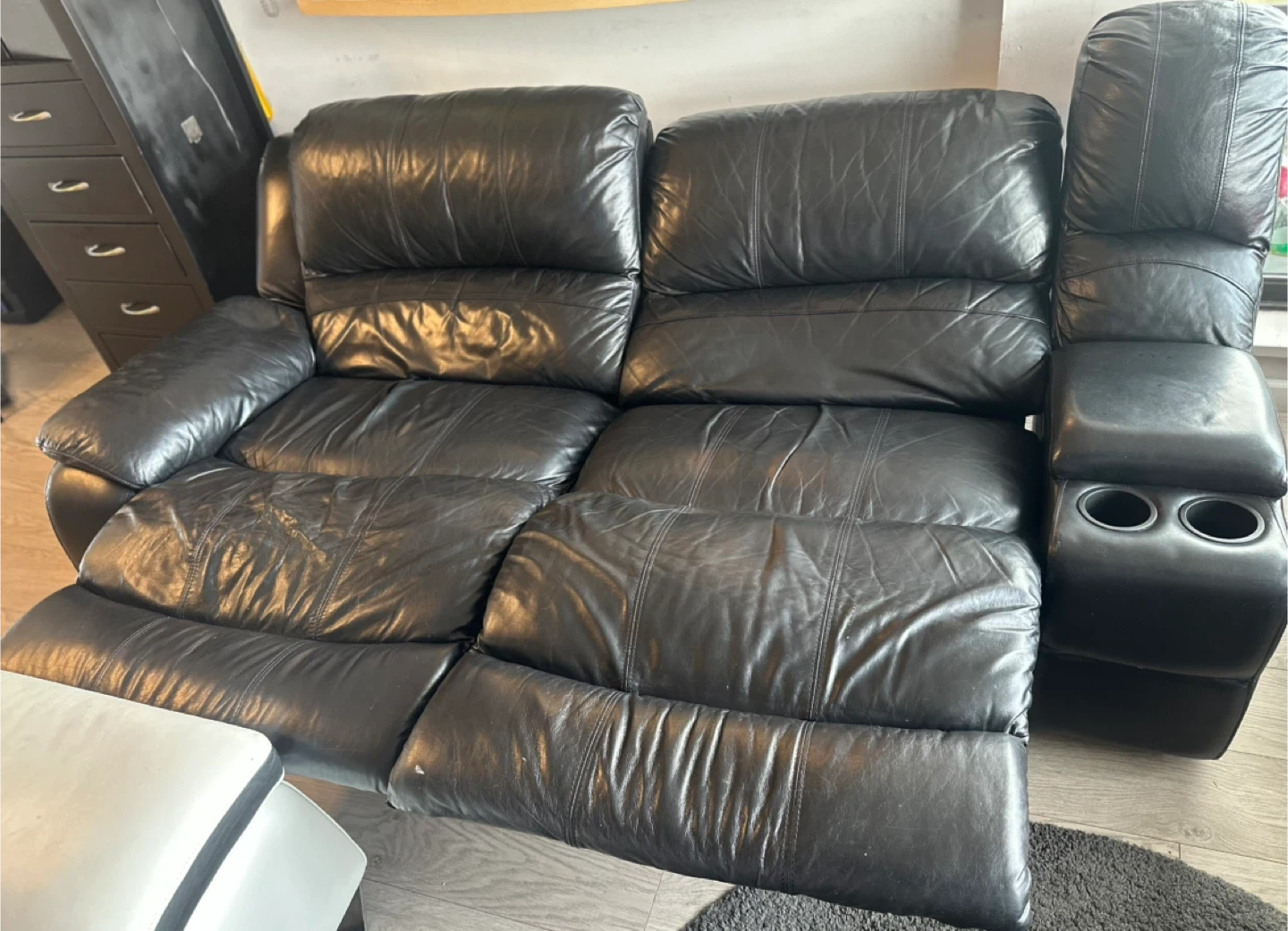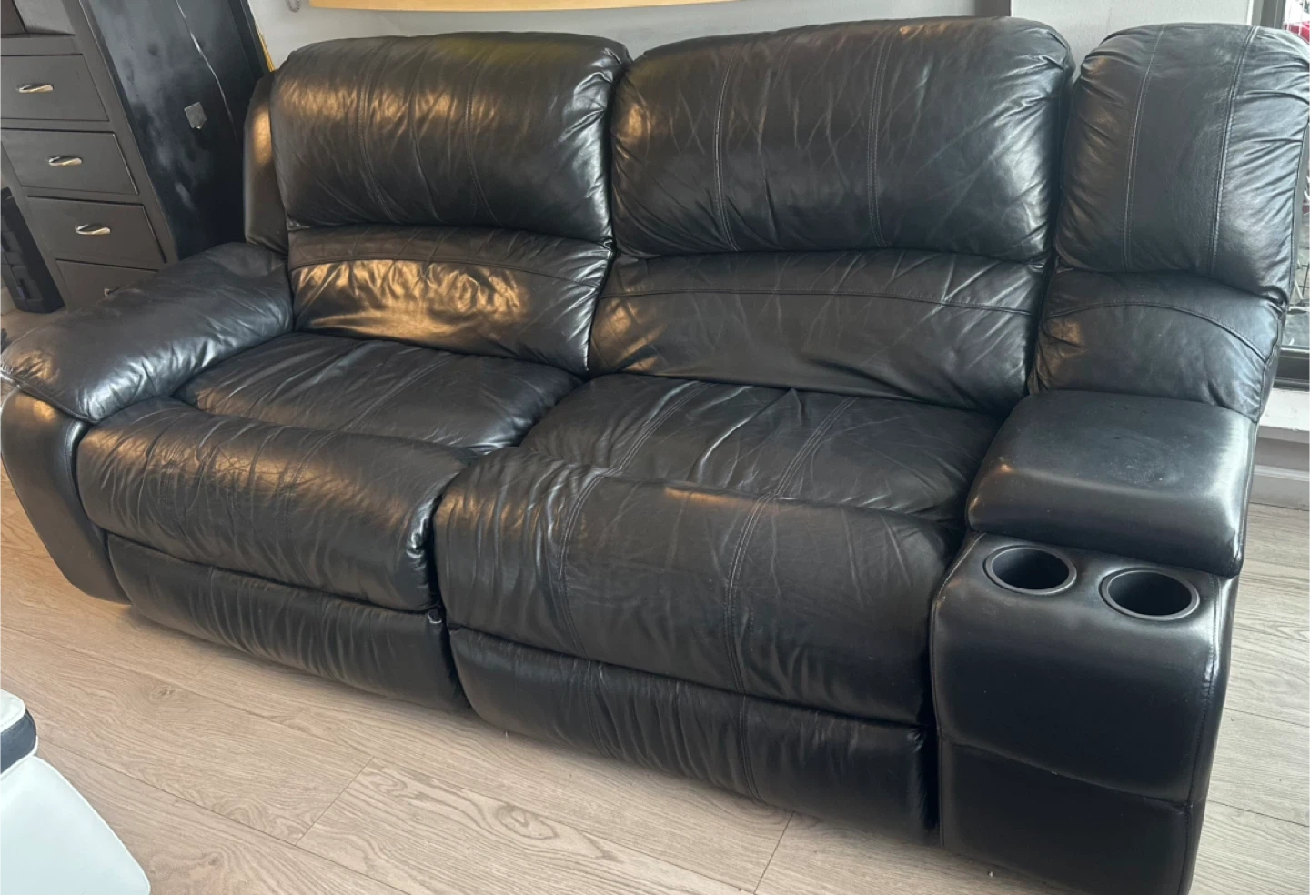 49Selling a comfy black leather two-seat reclining sofa. It features a centre console with cupholders for added convenience. Perfect for relaxing evenings! V don’t have time only for oct 30