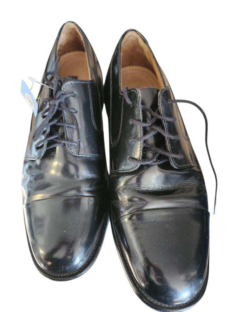 Selling a pair of classic black leather dress shoes. They're in good condition and ready for a new home! Perfect for any formal occasion or professional setting