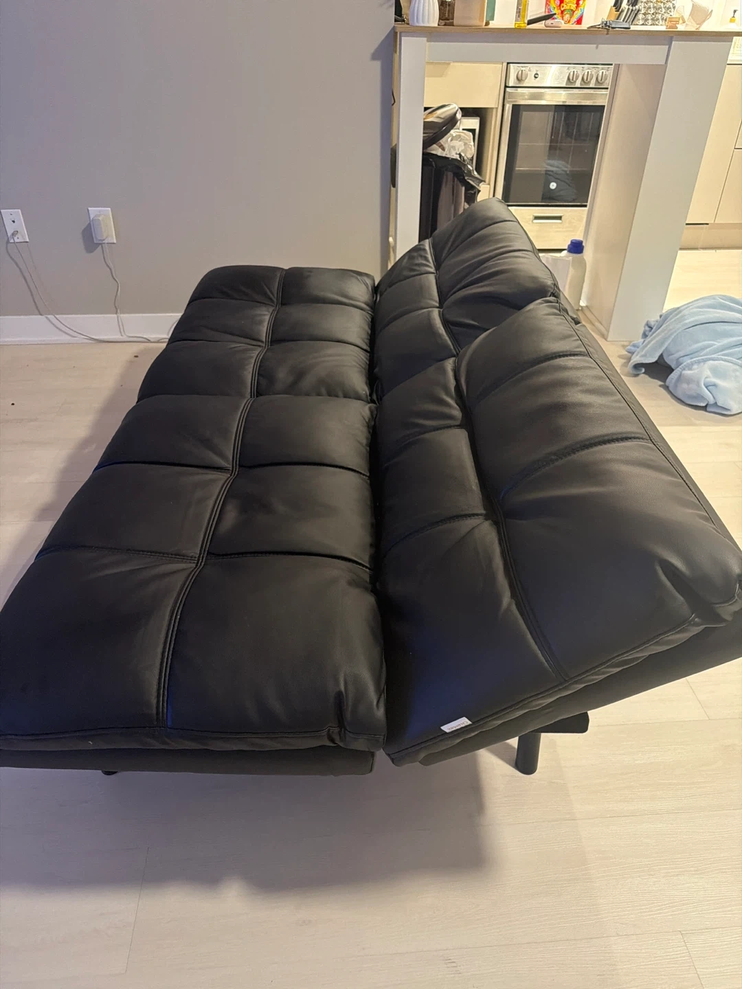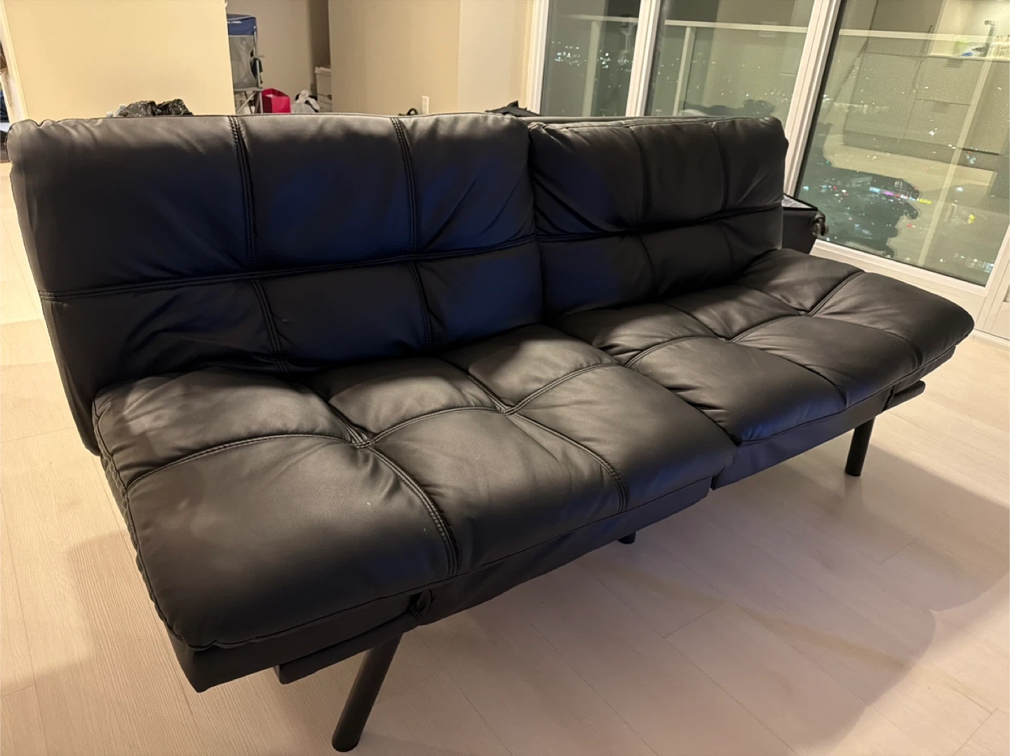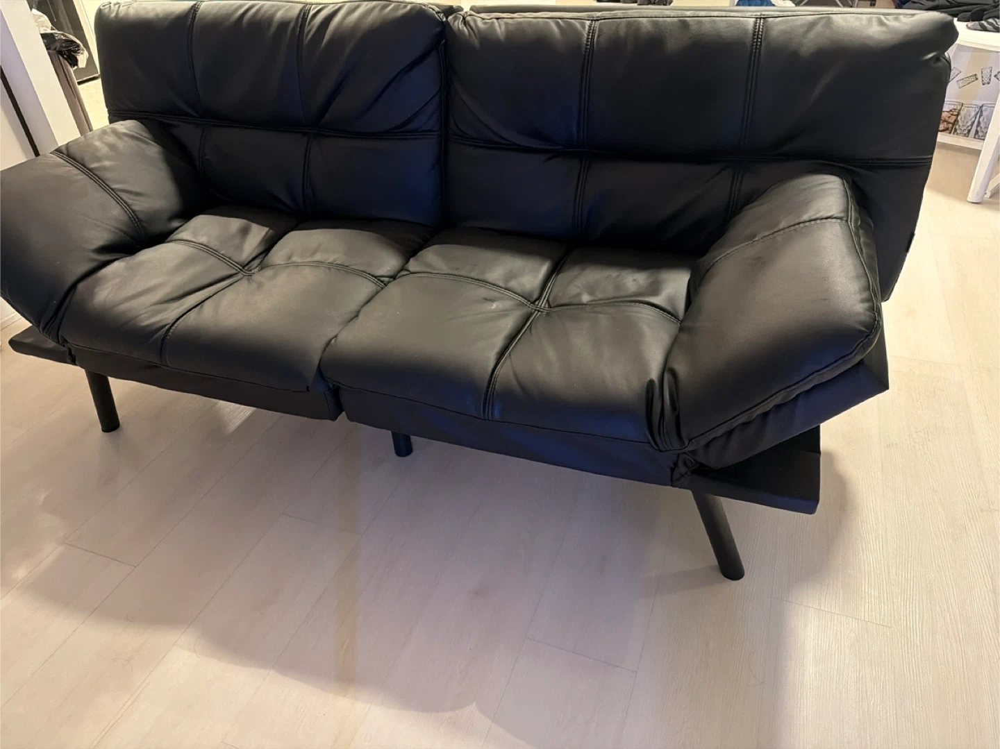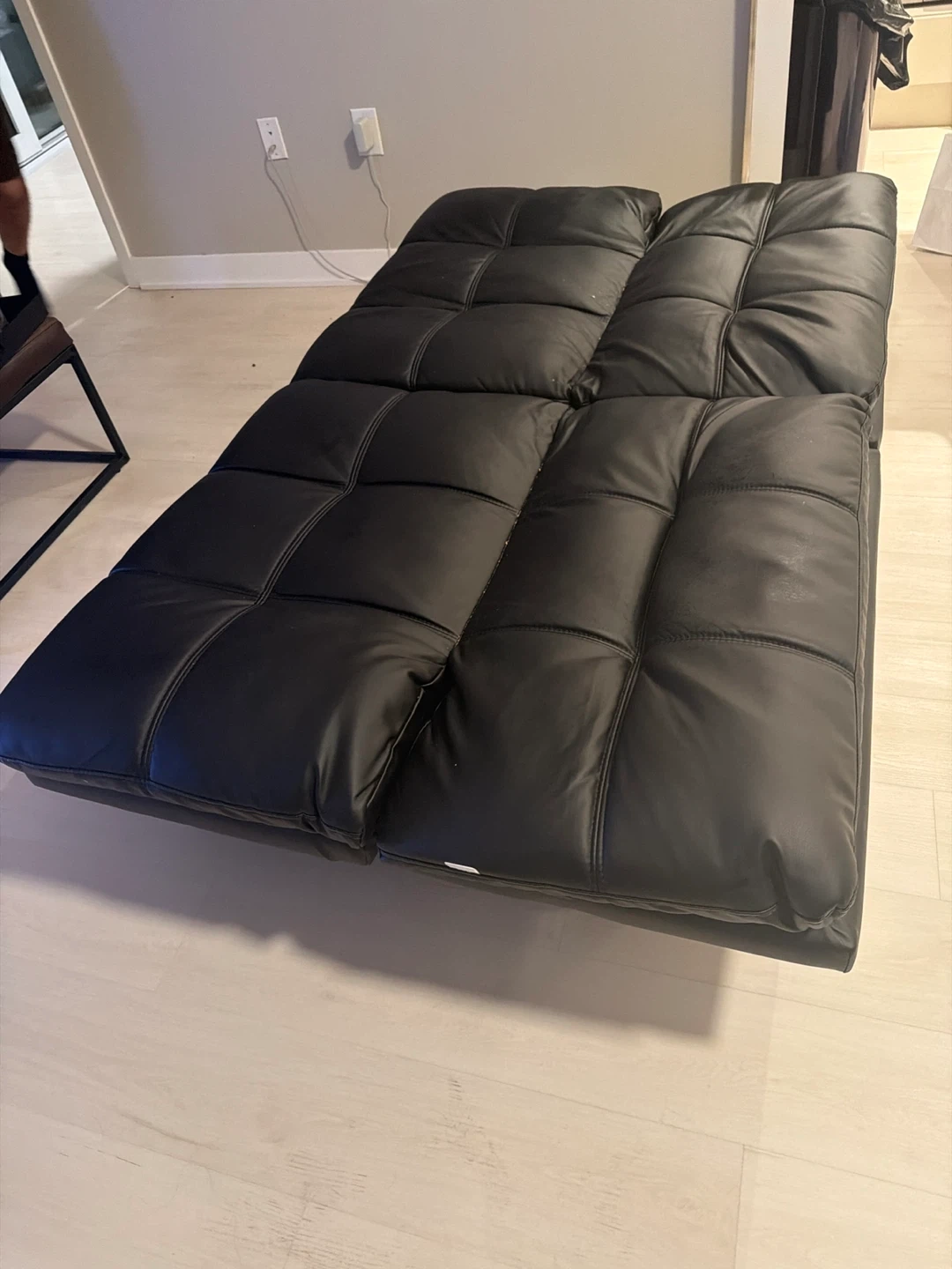 17Selling a black leather futon sofa bed. It's in good condition and would be perfect for a living room or guest room. The futon easily converts into a bed, providing extra sleeping space when needed