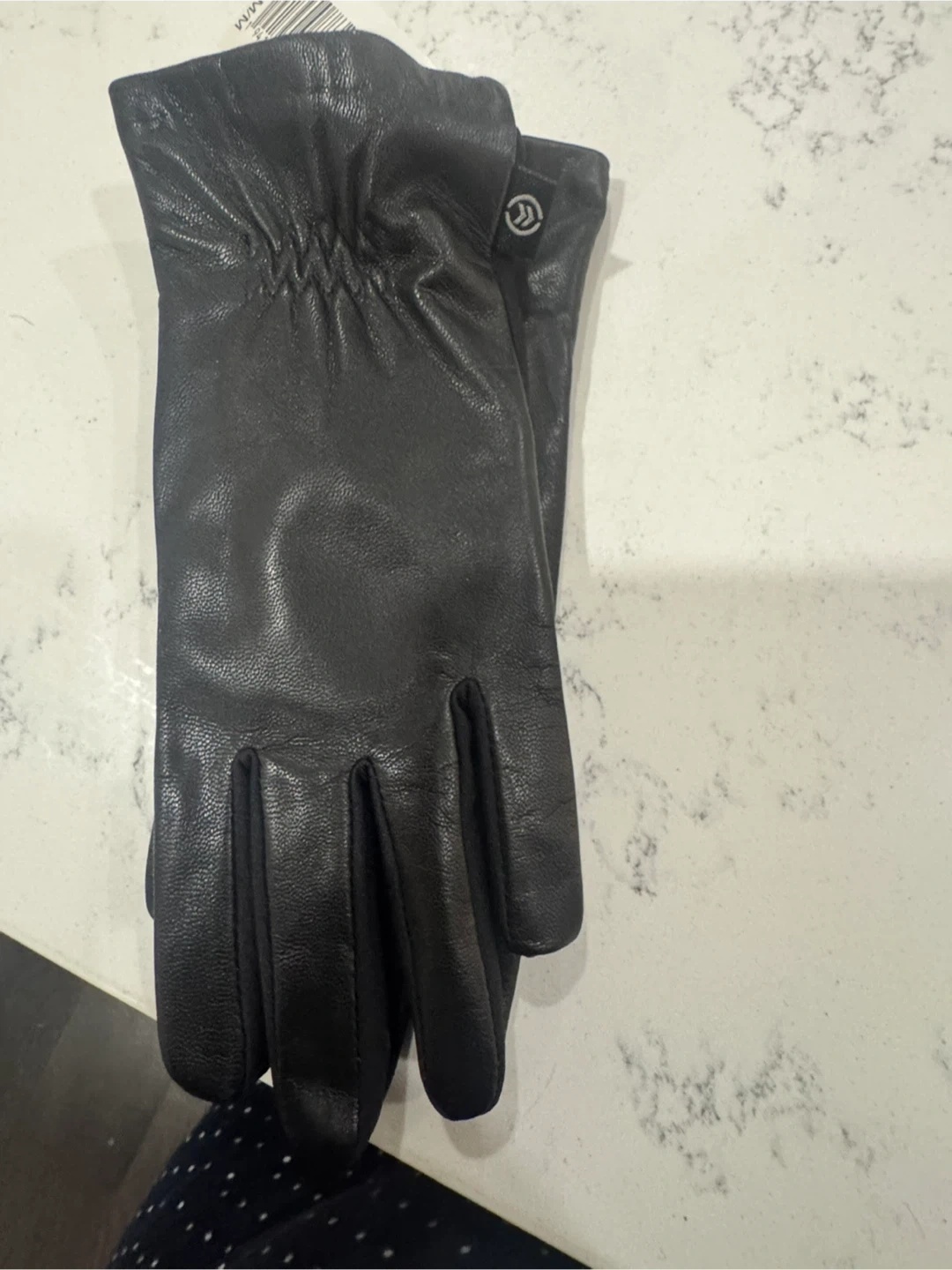 82Selling a pair of black leather gloves. They are size S/P M/M. Please see photos for details