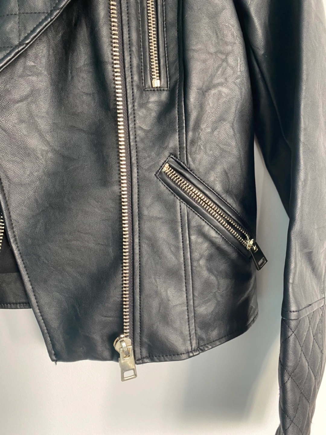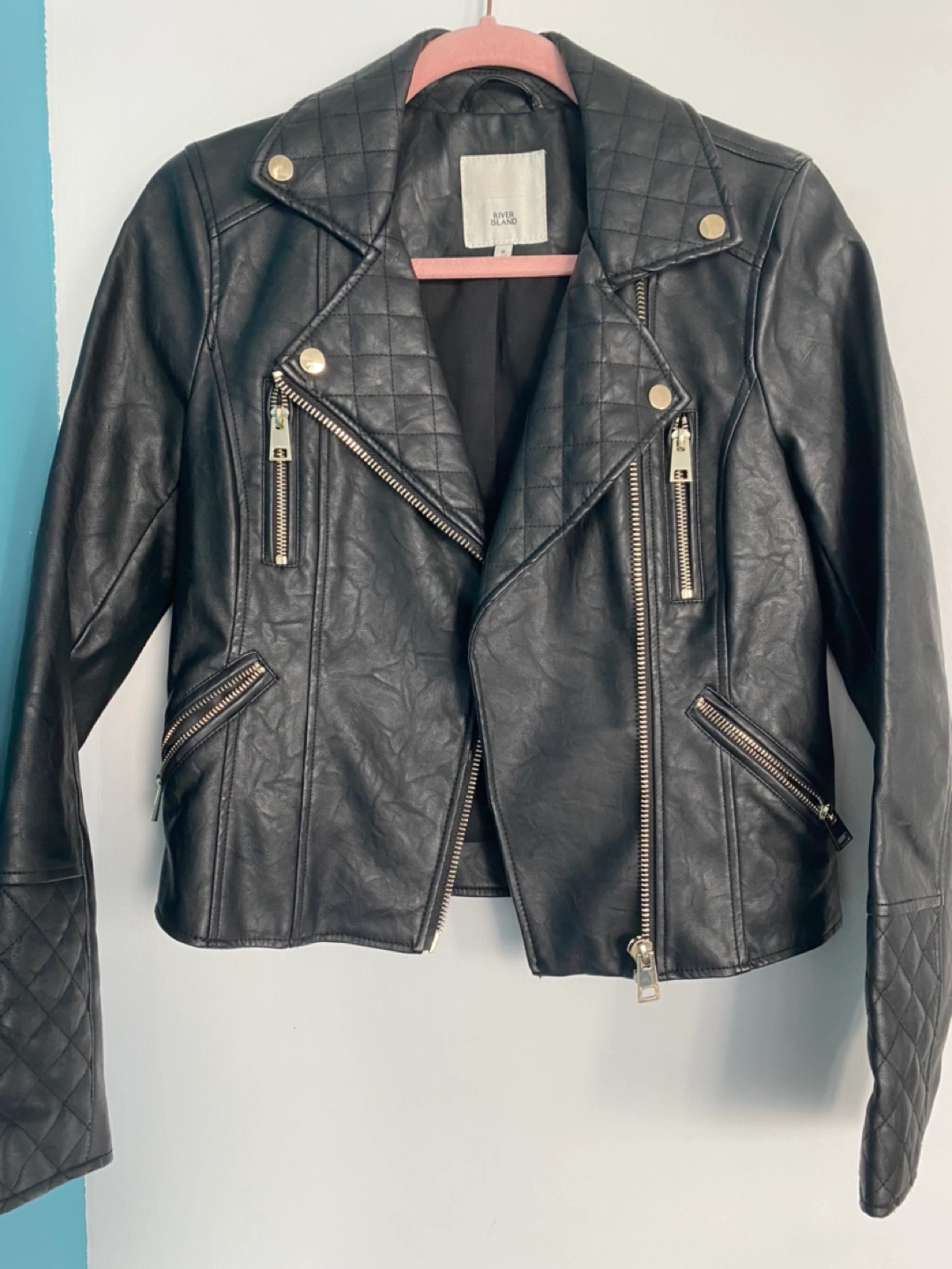 399River Island - Black leather jacket UK SIZE 8 / US SIZE 4 2 tone hardware