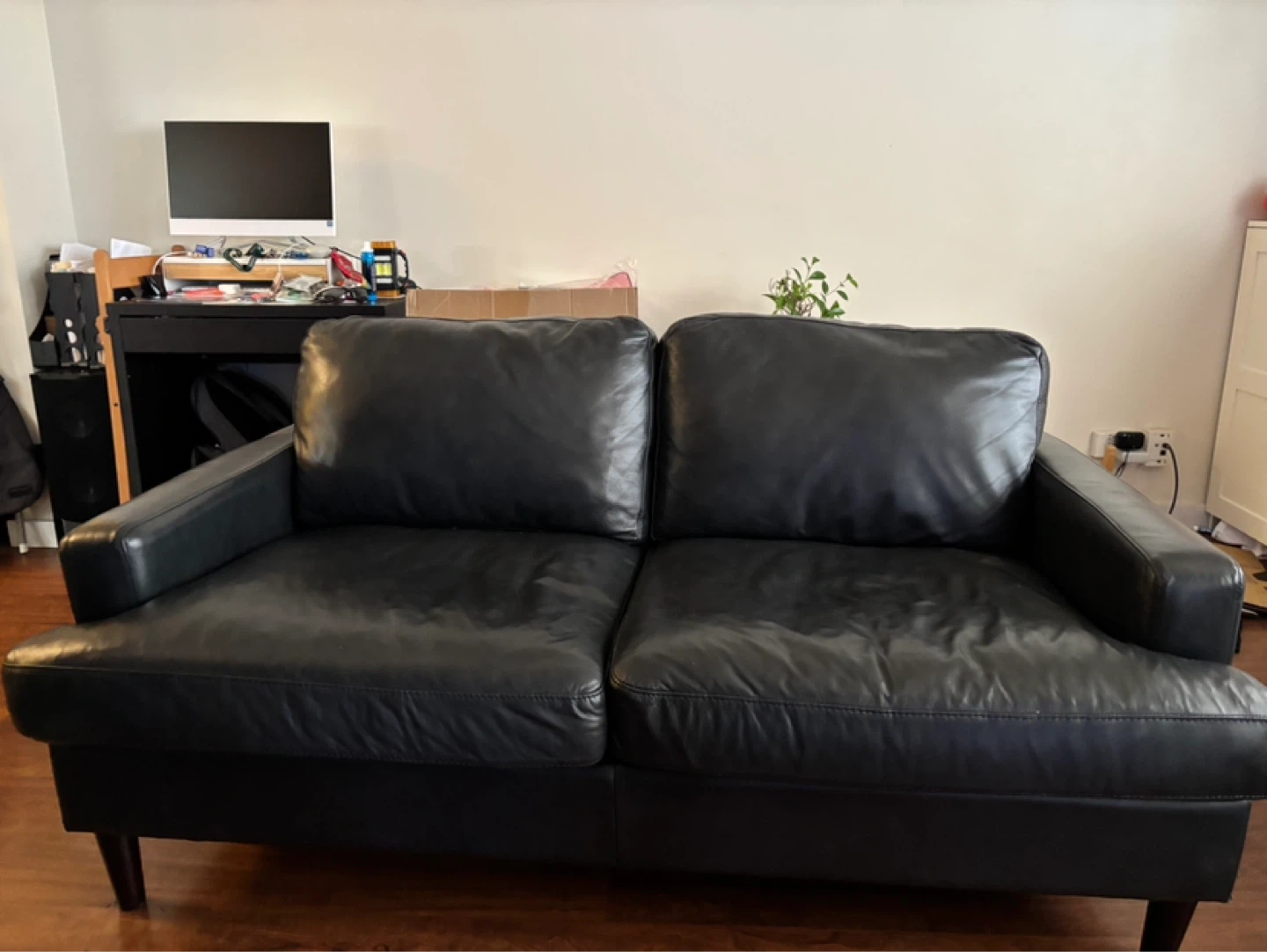 12Selling a comfy black leather loveseat sofa. It's in good condition and perfect for a small space or apartment. The leather is soft and the cushions are supportive, making it a great spot to relax after a long day. Selling because we’re moving