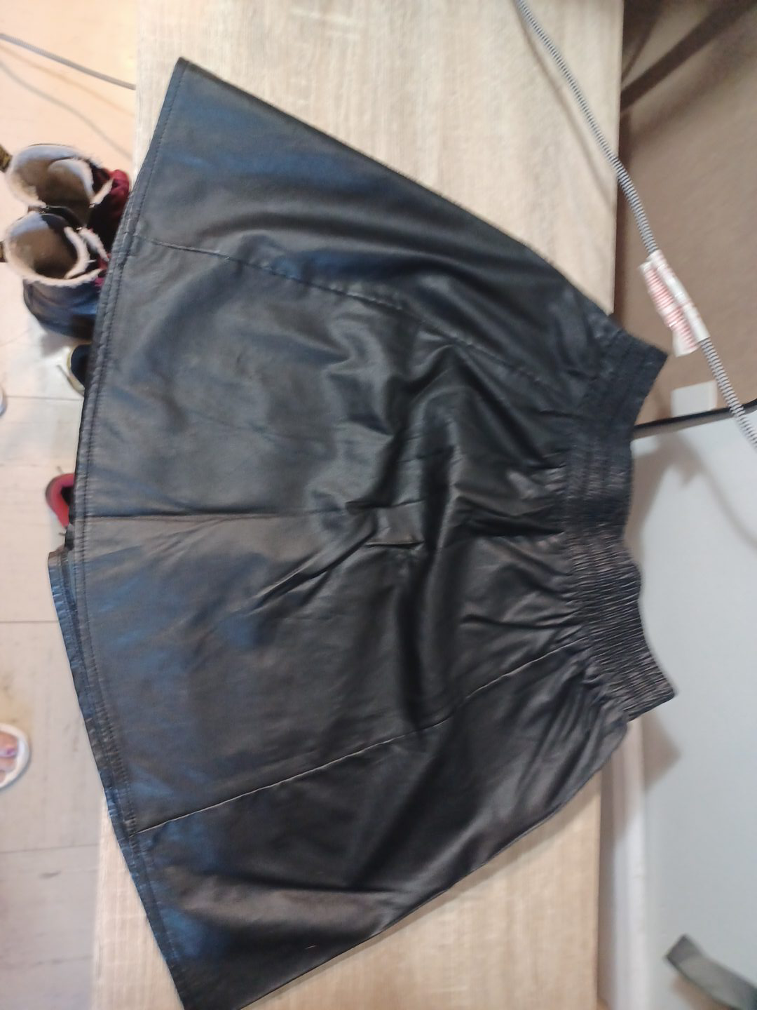 75Selling a black leather skirt. It's in great condition and would be a great addition to any wardrobe!