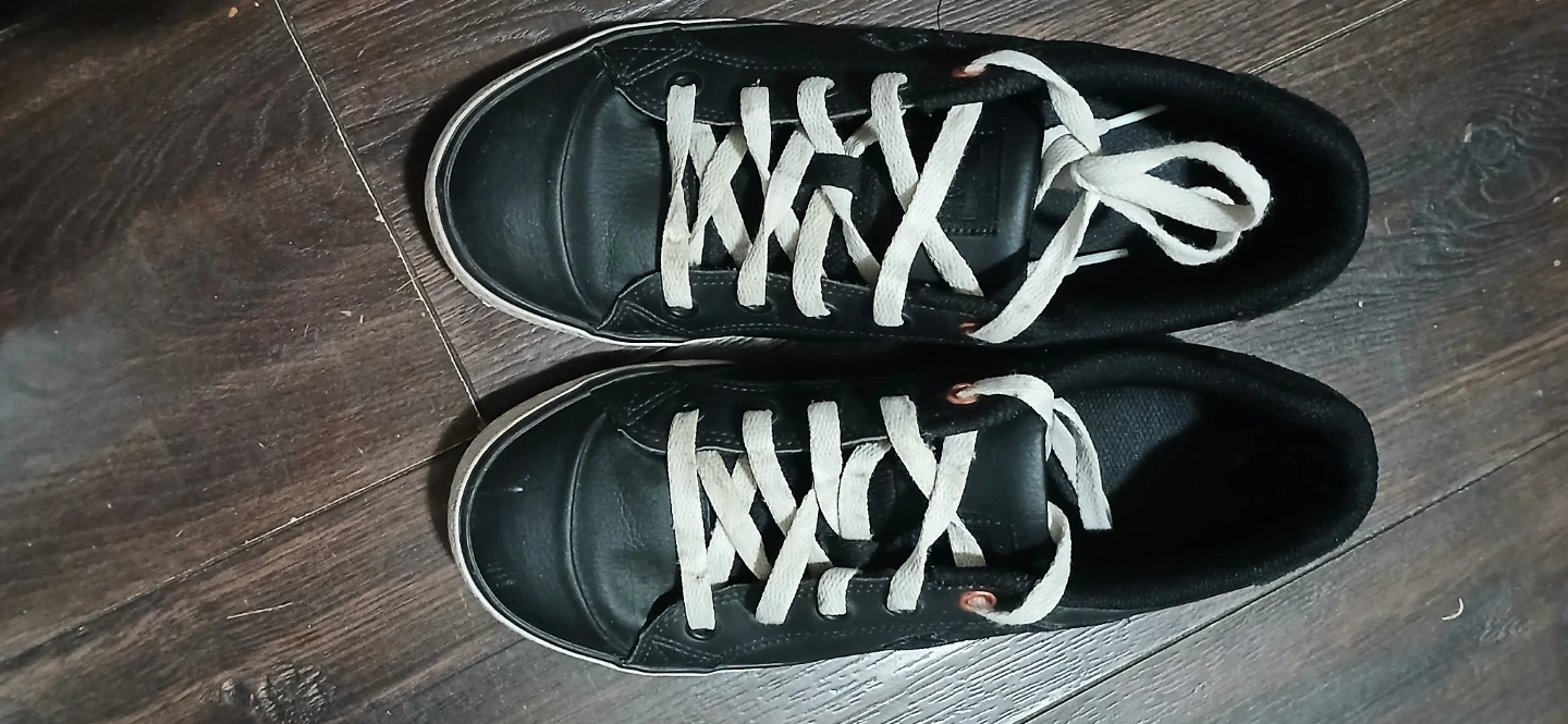 33Selling a pair of black leather sneakers. They're in good condition and ready for a new home
