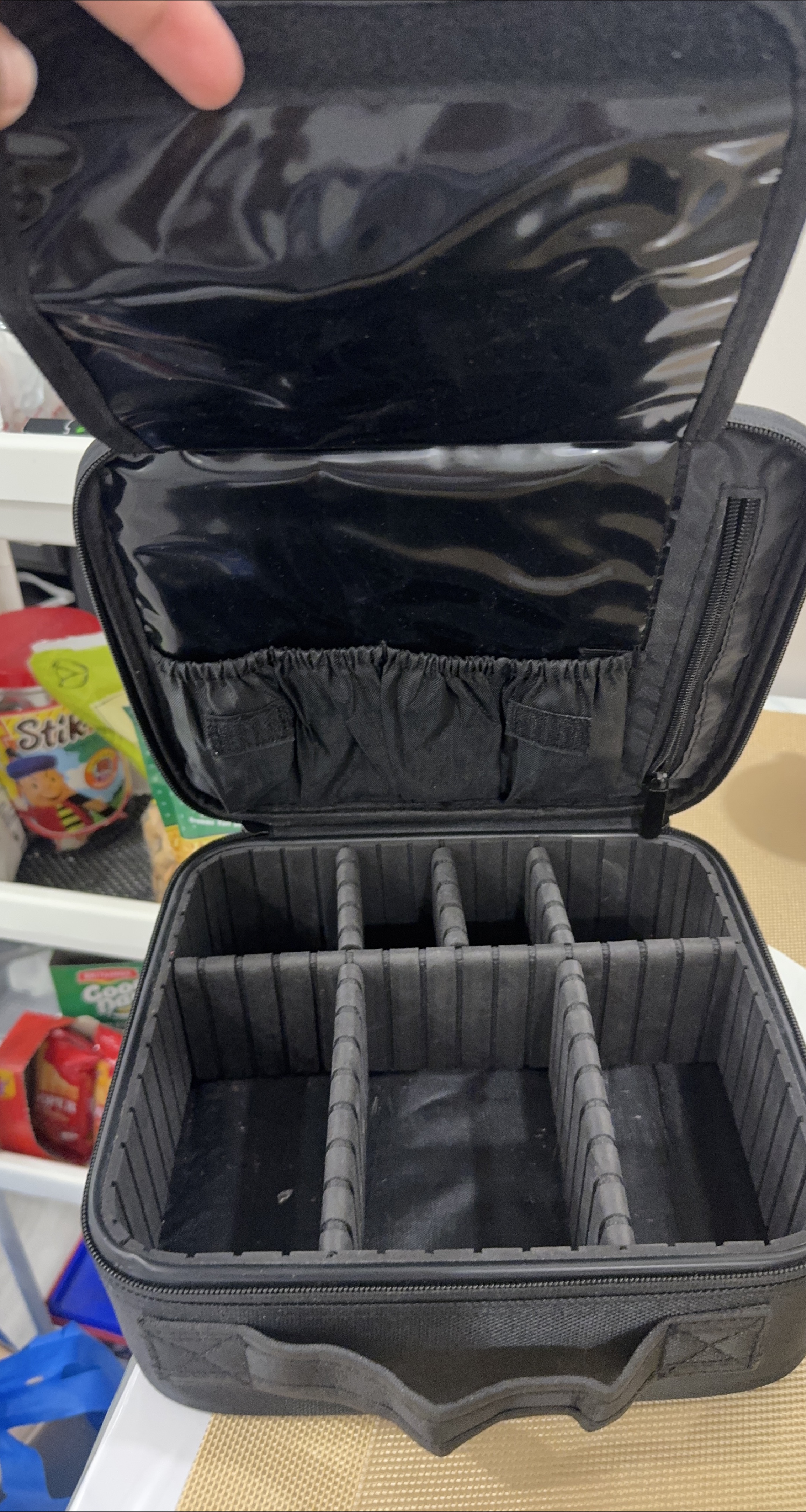 77Selling a black makeup organizer case! It's in great shape and perfect for keeping all your cosmetics and tools neatly arranged. It features adjustable dividers so you can customize the compartments to fit your needs. Great for travel or home use!
