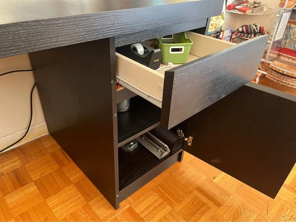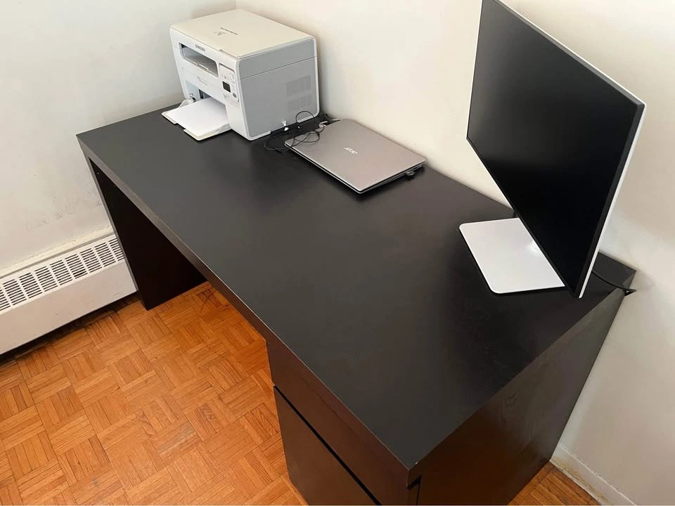 Black MALM IKEA Desk for sale! It’s in excellent condition and was only used for 5 months. Measurements: Max. load: 50 kg (110 lb) Maximum load/drawer: 1 kg (2 lb) Max load/shelf: 14 kg (31 lb) Width: 140 cm (55 1/8 ") Depth: 65 cm (25 5/8 ") Height: 73 cm (28 3/4 ") Height under furniture: 68 cm (26 3/4 ") Drawer width (inside): 32 cm (12 5/8 ") Drawer depth (inside): 39 cm (15 3/8 ") * Items on top and inside of the desk are not included! Pickup and cash only