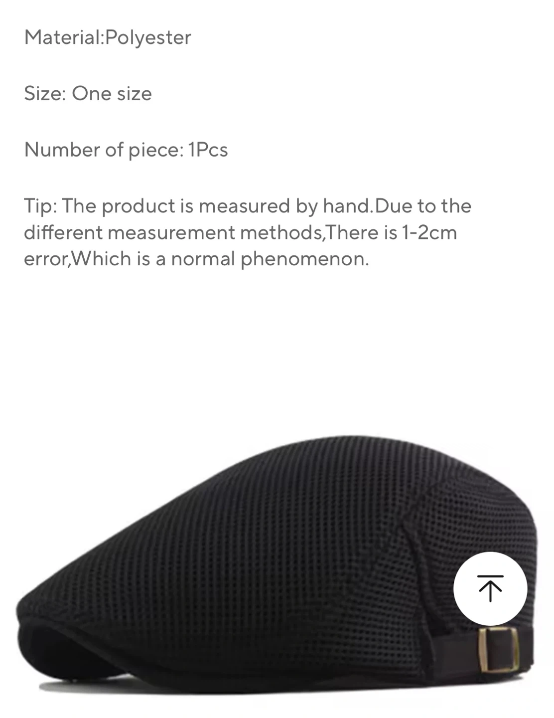 Selling a black mesh newsboy cap! It's a one-size-fits-all and made of polyester. Perfect for adding a touch of style to any outfit