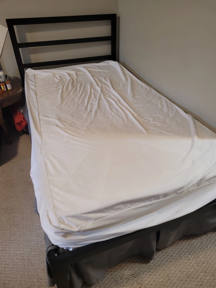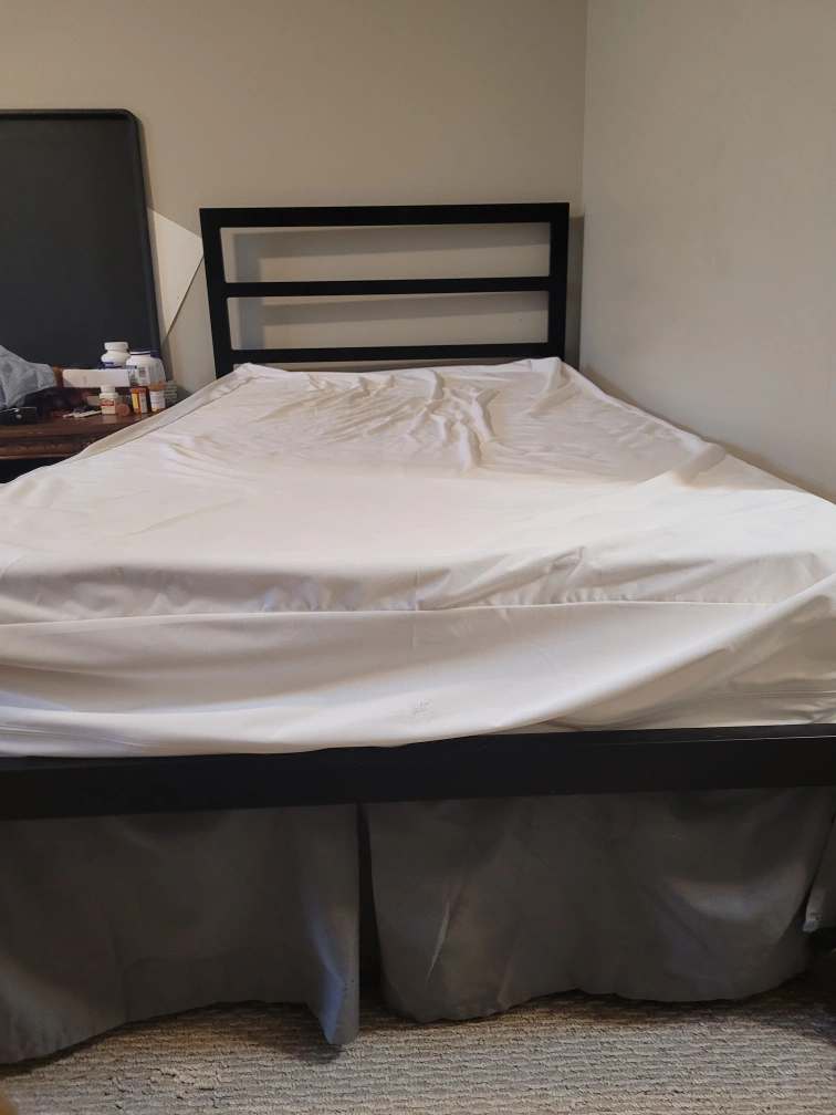 Selling a black metal bed frame in twin size. It's in great condition and ready for a new home. Simple and sturdy design, perfect for a bedroom or guest room!