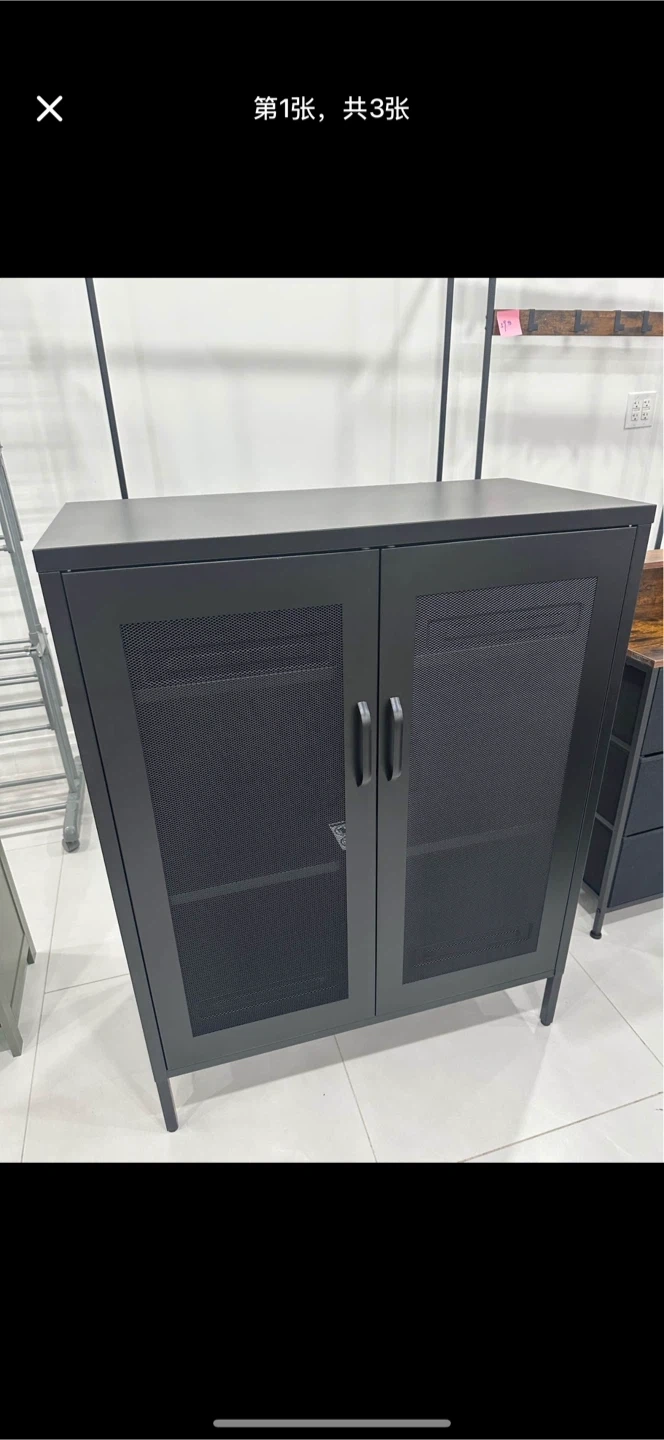 Selling a cabinet with a sleek, modern look! It features a black metal frame and mesh doors, perfect for adding a touch of industrial style to any room. It's in great condition and ready for a new home