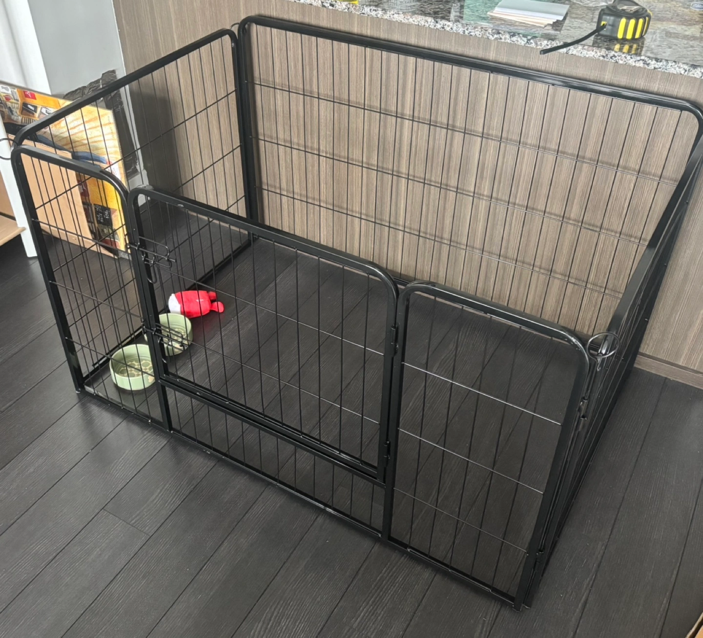 20Large black metal dog pen. Multiple sections, easily configurable. Suitable for puppies or small dogs. 48Lx31Wx27H