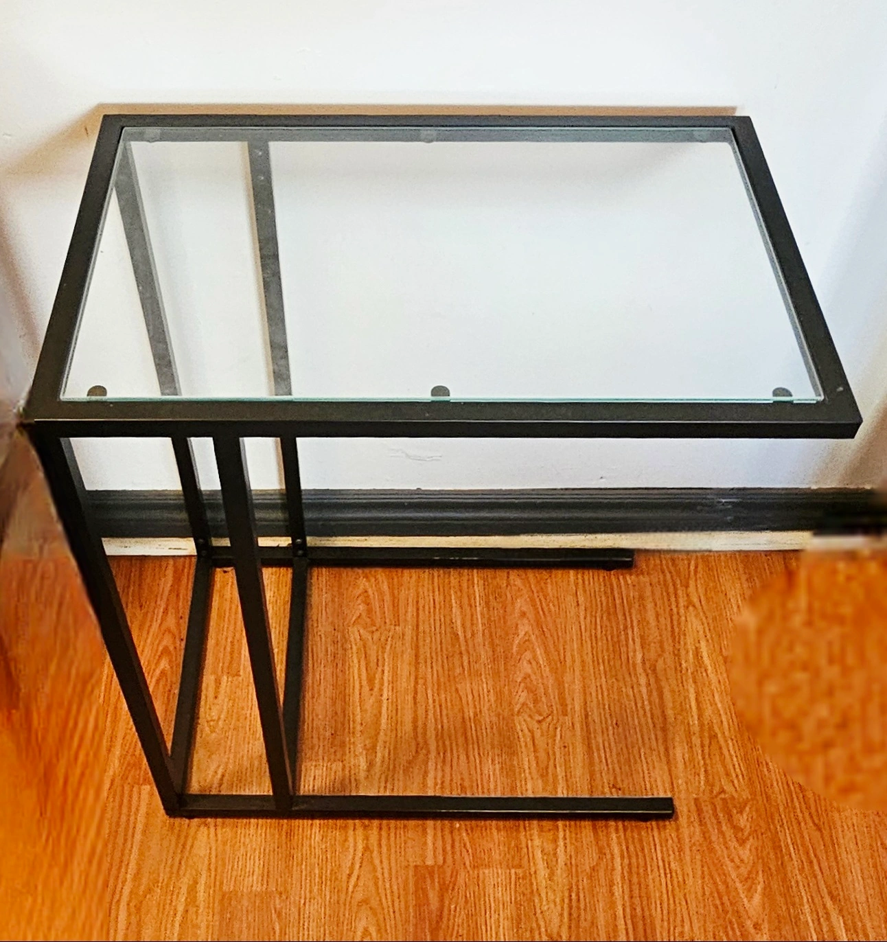 Selling a stylish black metal C-table with a glass top! It's in great condition and would look great in any living room or bedroom. Perfect for placing beside a couch or bed for easy access to your laptop, books, or snacks. From a smoke-free, pet-free home. Bundle discounts are available—feel free to browse my other listings. Thanks for looking! 😊🙏