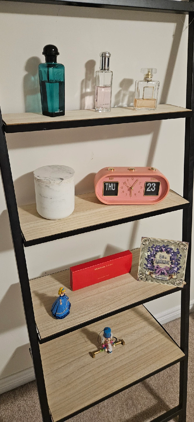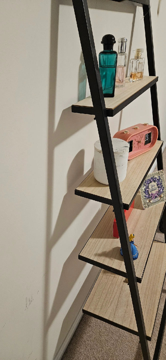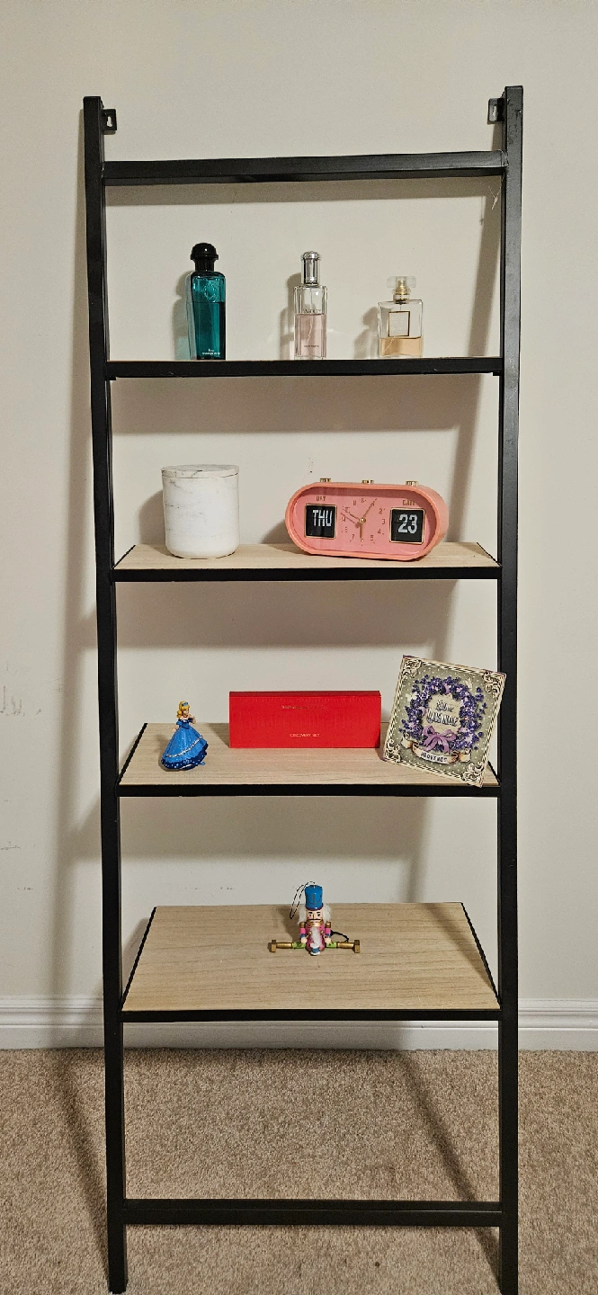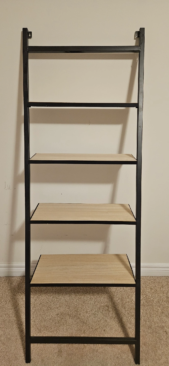 128Selling a black metal ladder shelf. It has a light wood tone for the shelves. Great for displaying items or adding some storage to a smaller space. In excellent condition. Bought last year - best price 80$ - value : 160$ + taxes