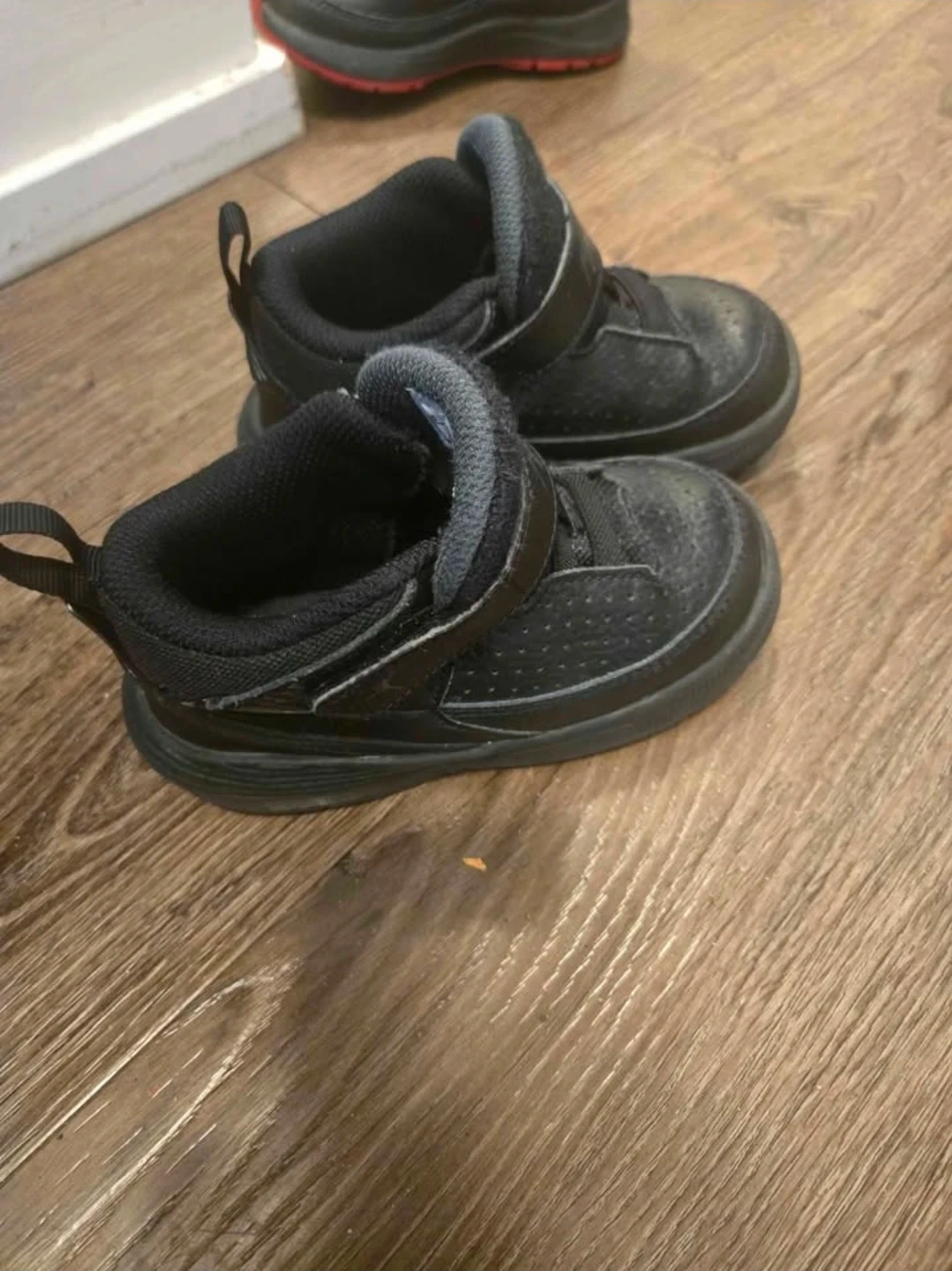 10These are a pair of black toddler shoes with a velcro strap. They still have lots of life left in them!