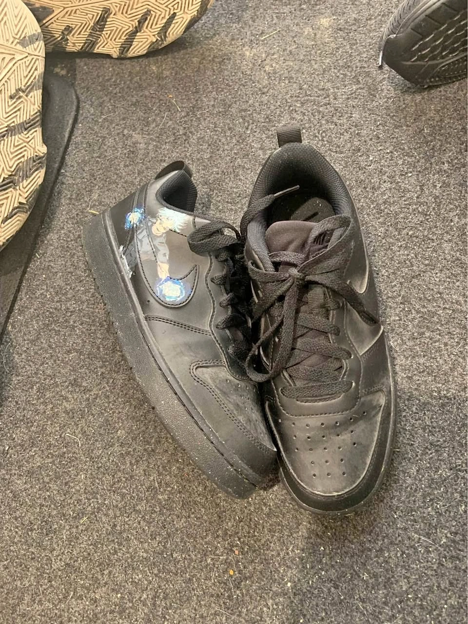 10Nike Black Shoes Size 5 β’ Good condition β’ Clean and comfy Selling cheap β got more pairs too π Pickup in Brampton Gojo From JJK design on the right shoe