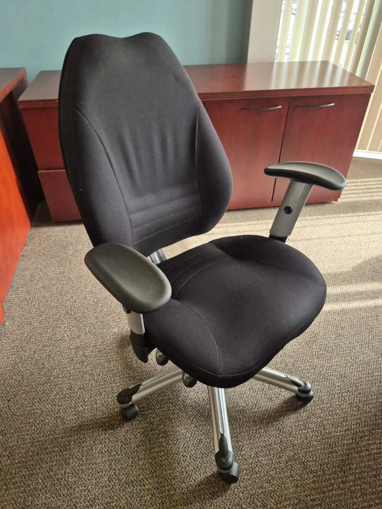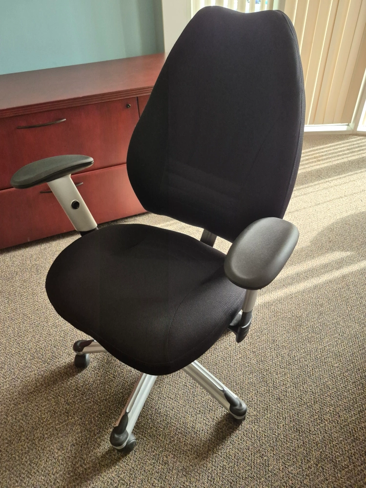 This is a used Steelcase Leap office chair known for its ergonomic design and comfort, perfect for long hours at your desk. It features adjustable lumbar support, seat depth, and armrests, ensuring a customized fit. The chair is in good working condition with some cosmetic wear. If you're looking for a chair that supports your back and keeps you comfortable, this is it! Suggested listing price is $ 350. Sellingn it for $125 Specifications: * Brand: Steelcase * Model: Leap * Colour: Black * Adjustable Lumbar Support * Adjustable Seat Depth * Adjustable Armrests Isn't it remarkable how a good chair can change your entire workday? Just a thought to keep you pondering! If the ad is up, the chair is available!
