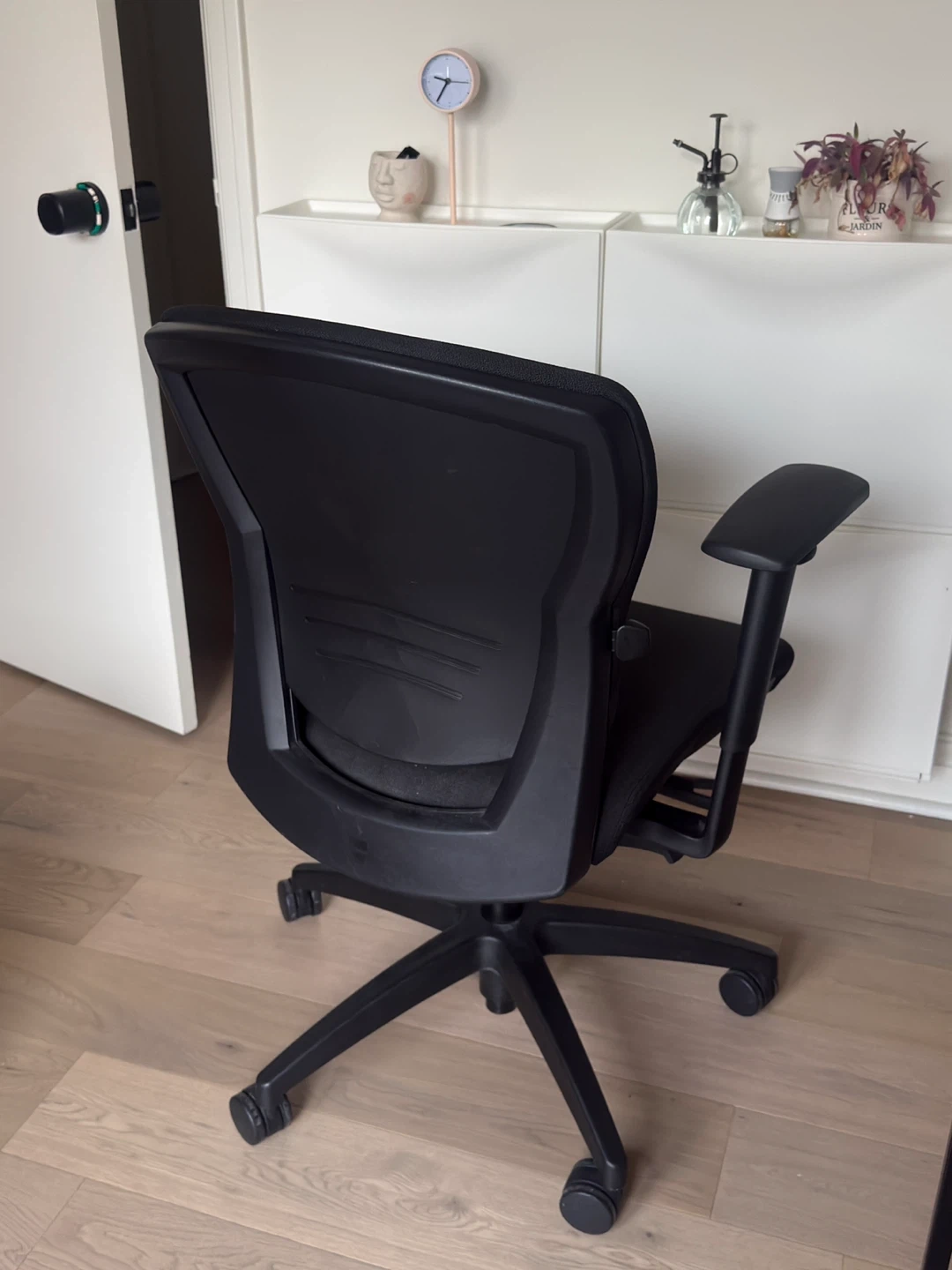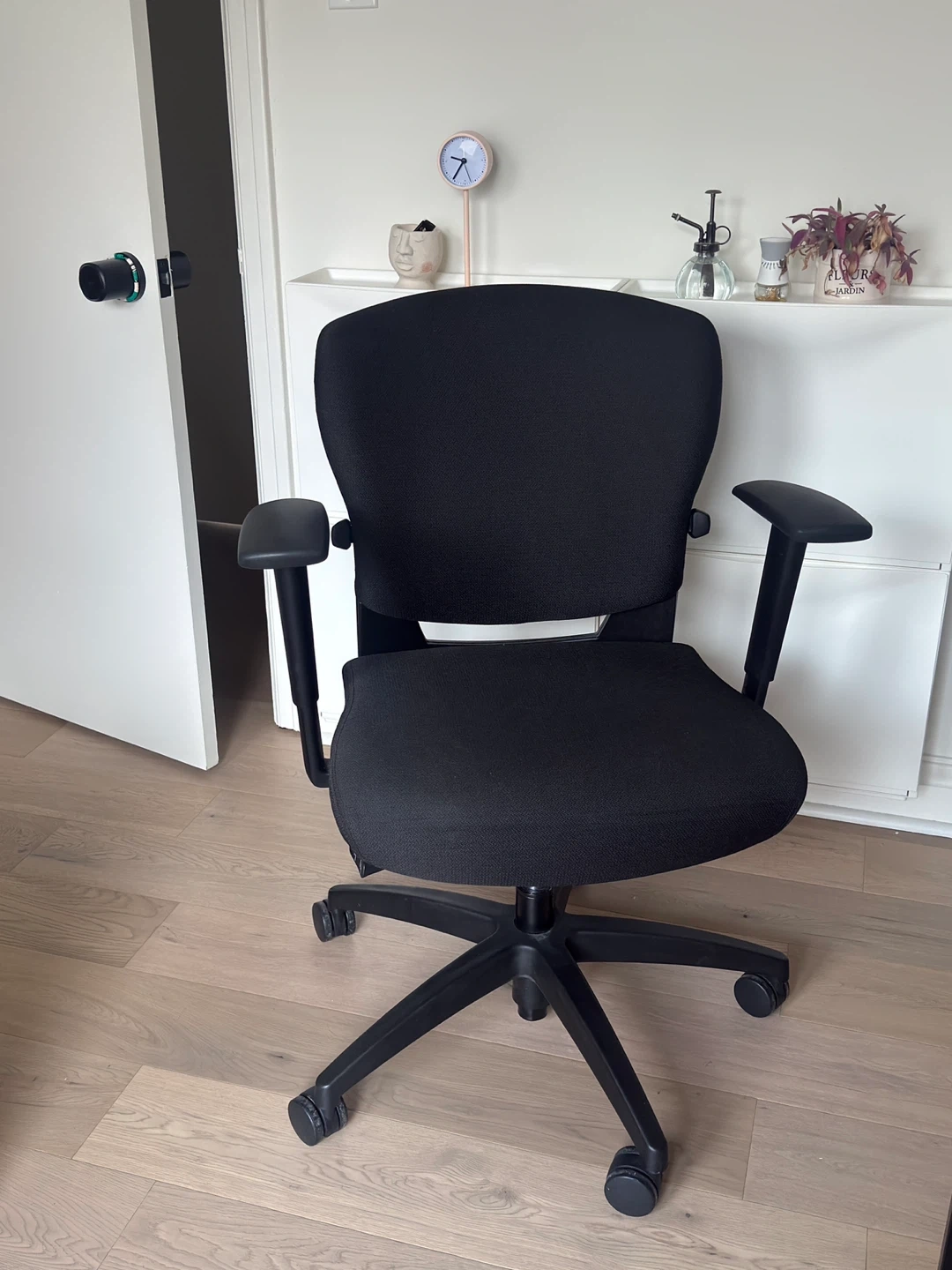 60Selling a comfortable black office chair! It's in great shape and ready for a new home office or study space. It features adjustable armrests and a sturdy base with smooth-rolling casters, making it easy to move around your workspace. This chair is perfect for long hours of work or study