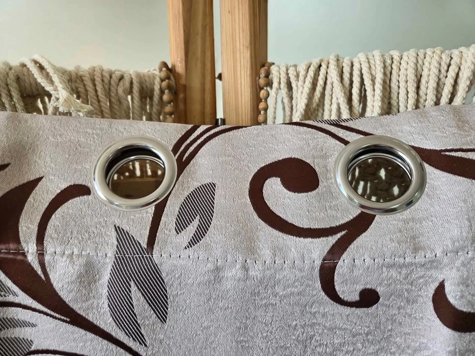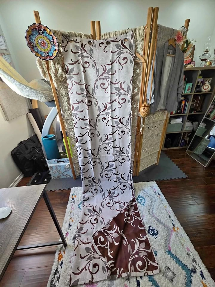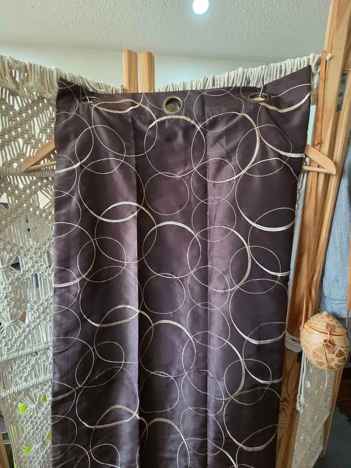 Two kinds of blackout curtains. Cream = 4 panels. $30 for 2 panels. 94"x52" Brown = 2 panels @$30. 85"x52"