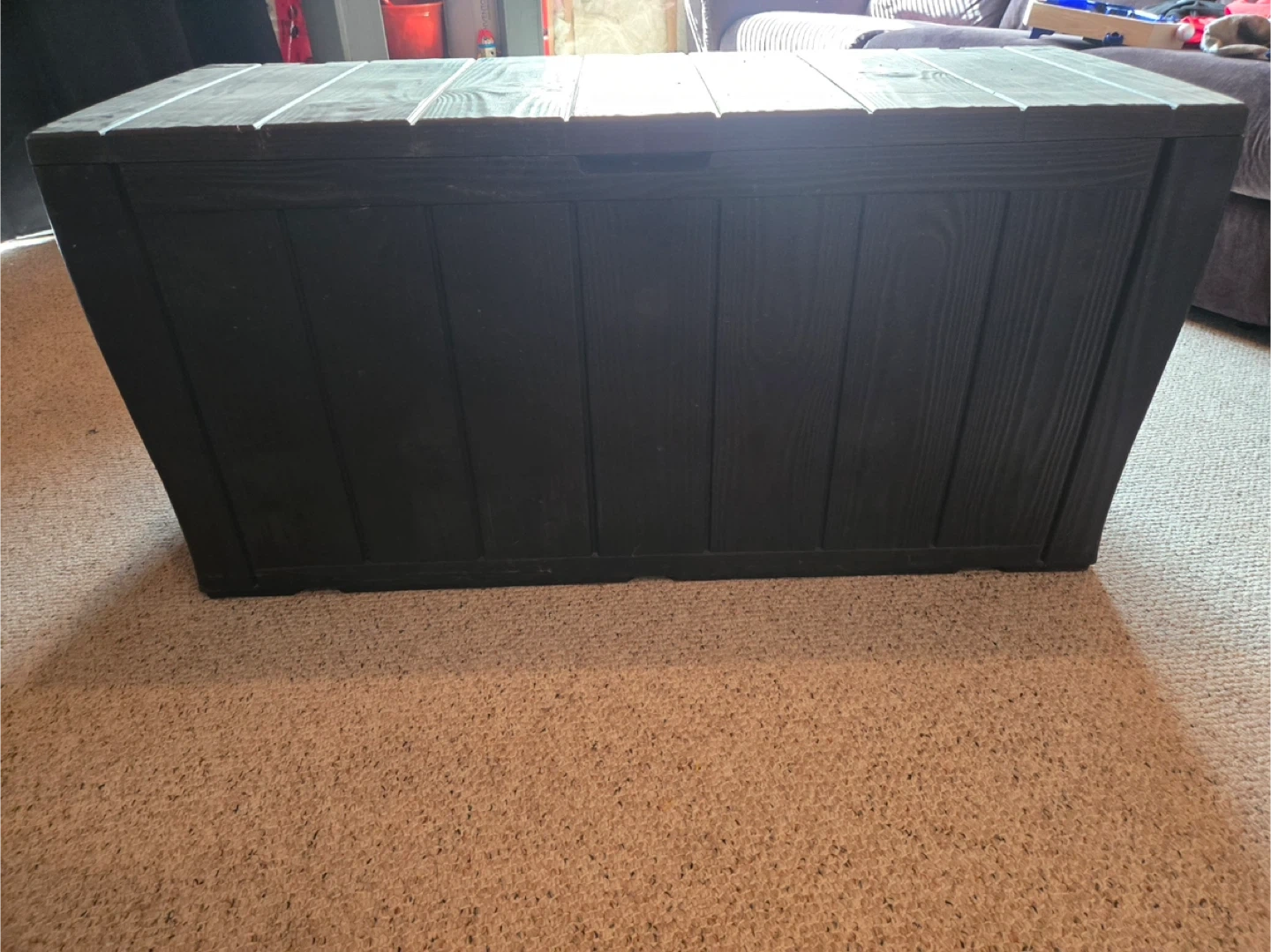 Selling a dark brown outdoor storage box. It's in good condition and ready to use. It's great for storing outdoor items and keeping them protected from the elements. Perfect for your patio, deck, or garden!