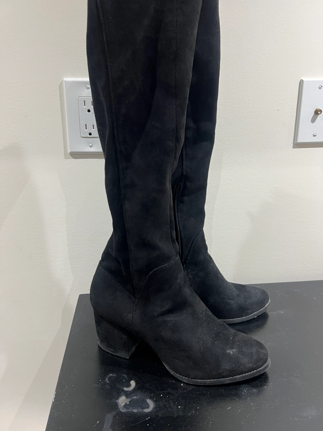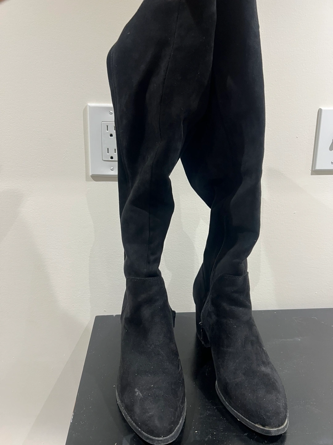 Selling a pair of stylish black over-the-knee boots! They are in great condition and ready for a new home. Perfect for adding a touch of elegance to any outfit. They are a size 8.