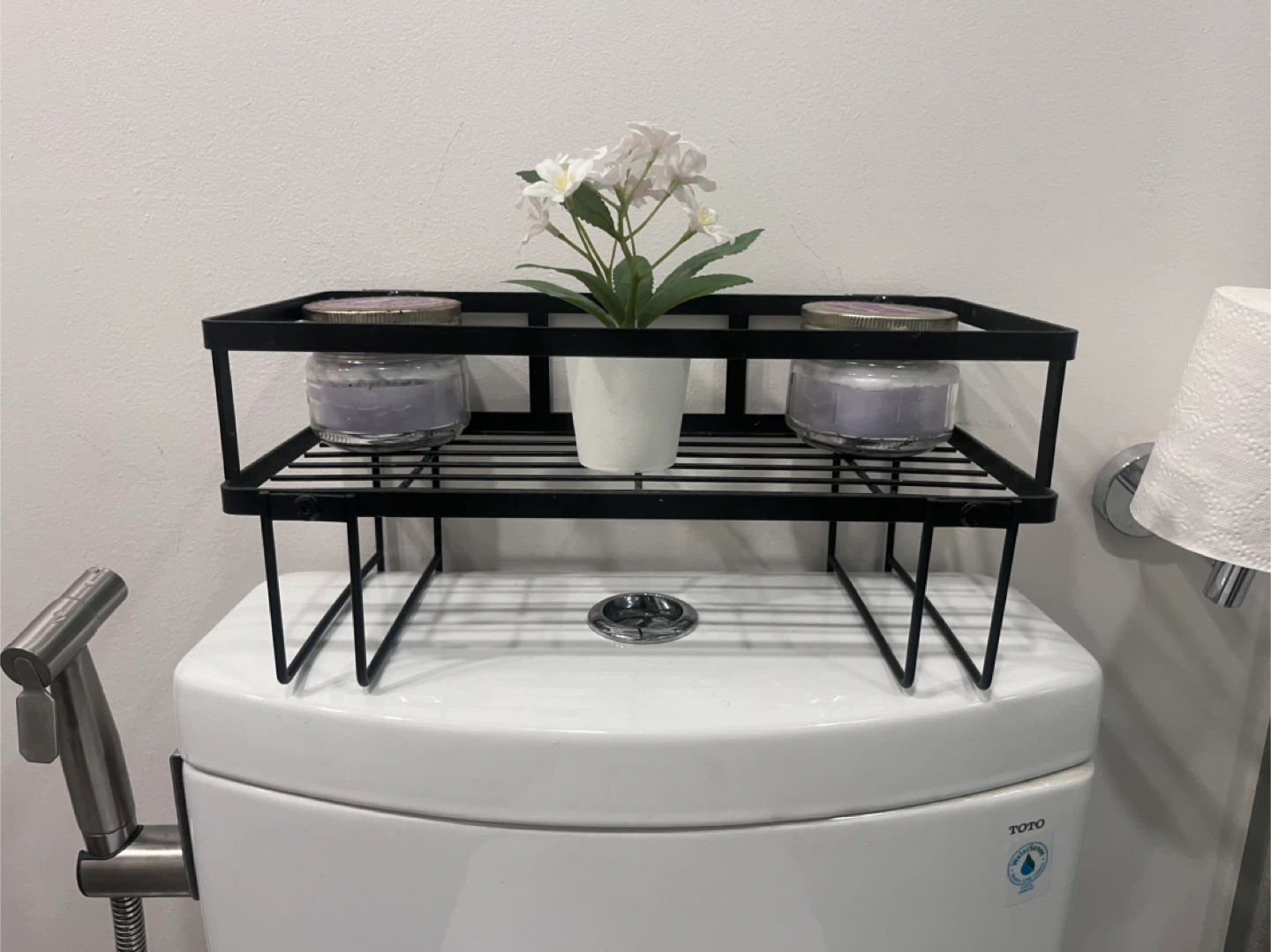 85Declutter your bathroom with this handy over-the-toilet storage shelf! It's perfect for adding extra space for toiletries, candles, or decor. The shelf is in great condition and ready to help you organize your bathroom essentials