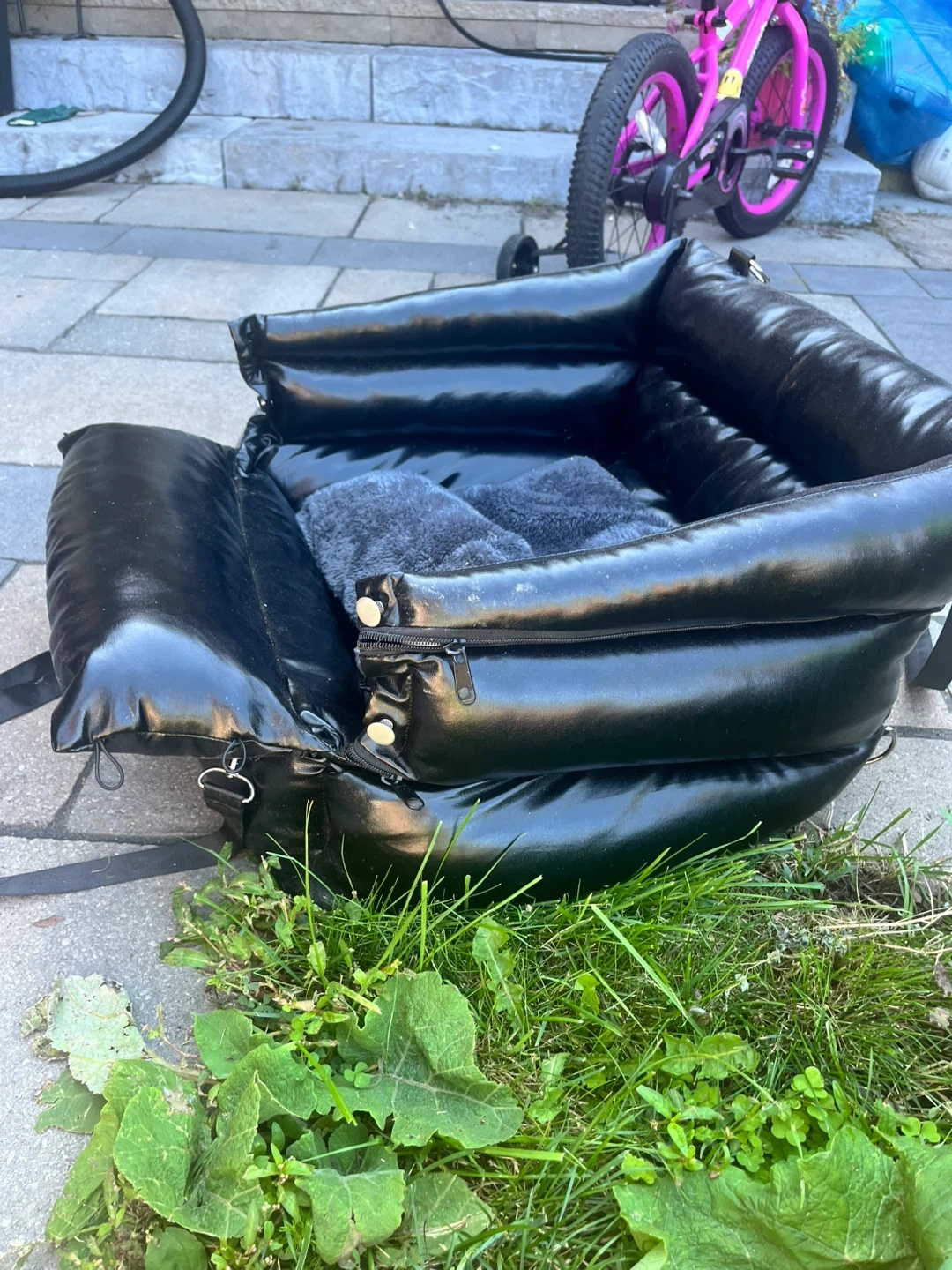 Selling a black padded pet booster seat! It looks like it's in great condition and ready for your furry friend's next adventure. It's perfect for keeping your pet safe and comfortable during car rides