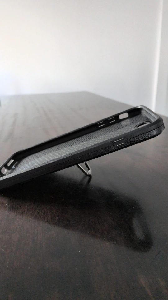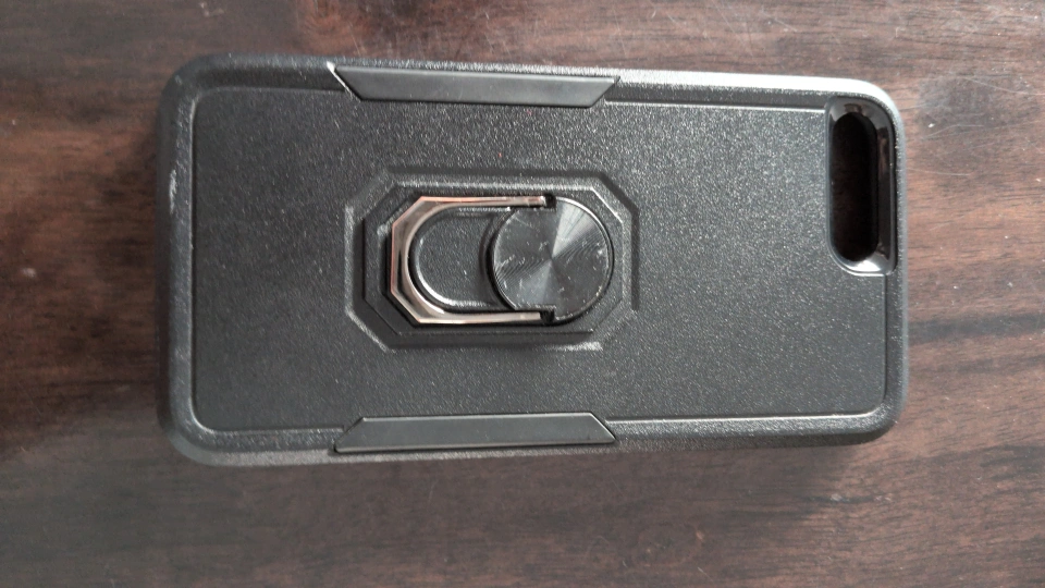 Selling a black phone case that comes with a built-in stand! It's in great condition and ready for a new phone. For iPhone 7 plus