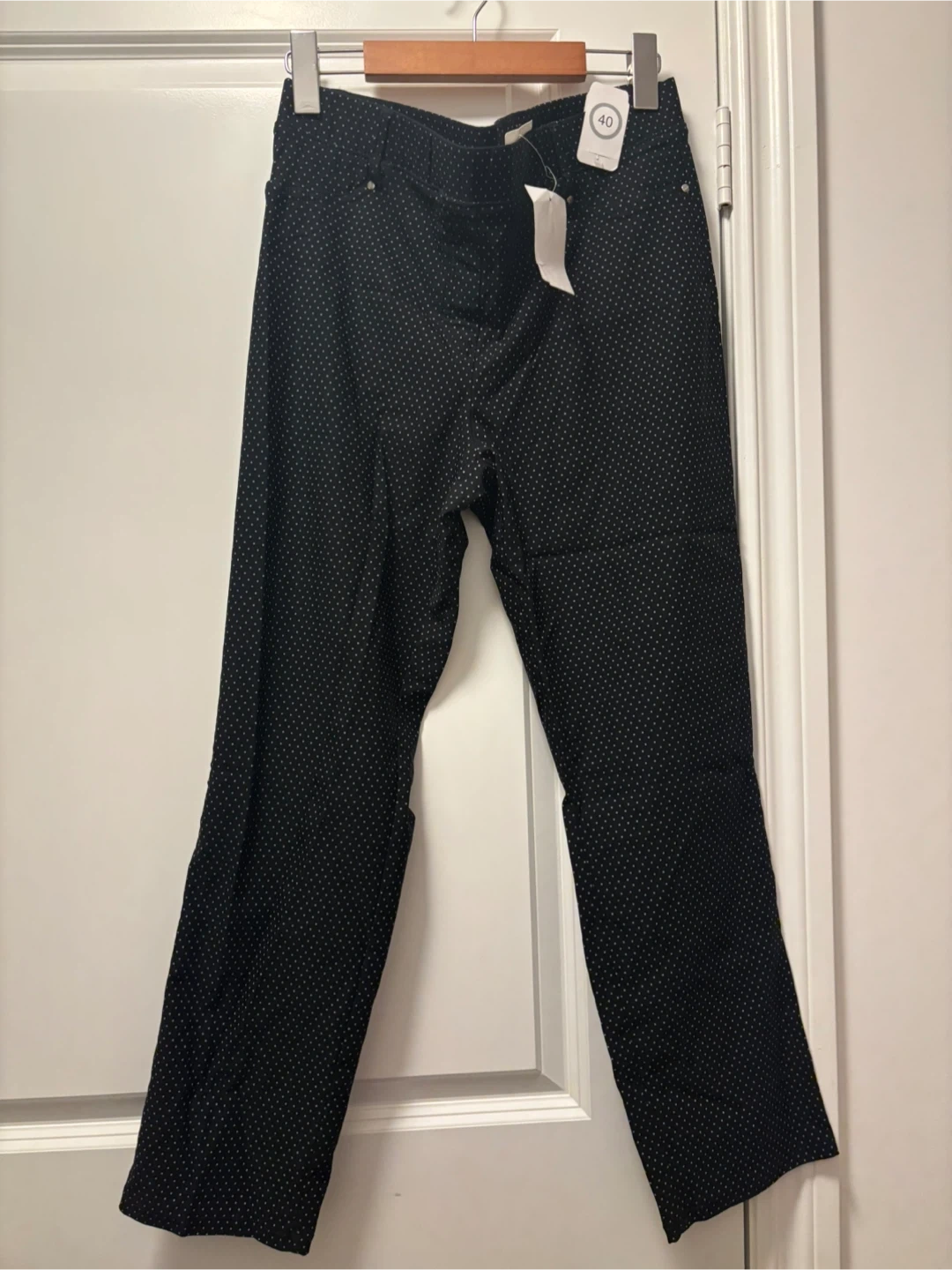 112Selling a pair of black pants with a cute polka dot pattern! They are size 40 and would be a great addition to your wardrobe
