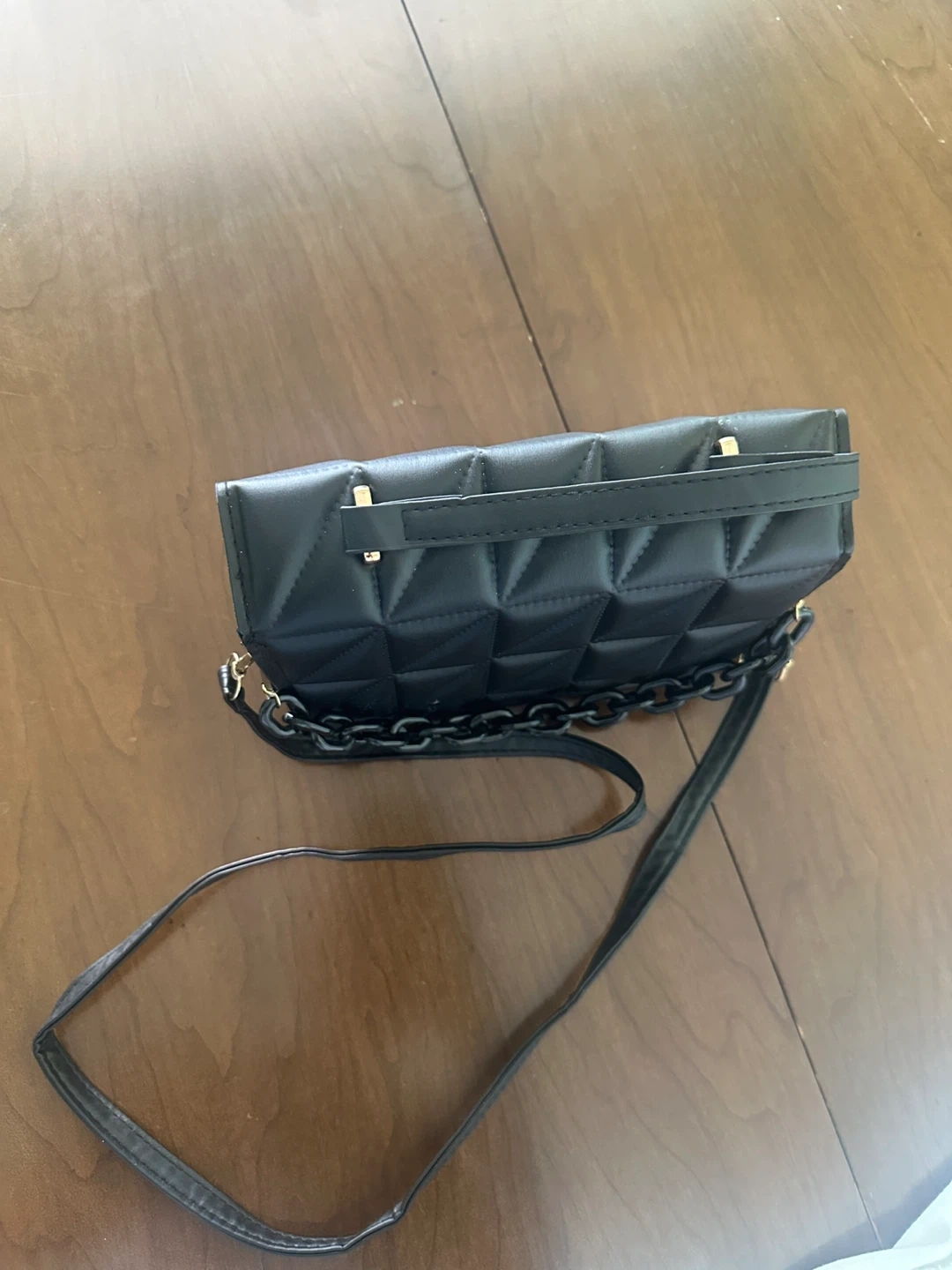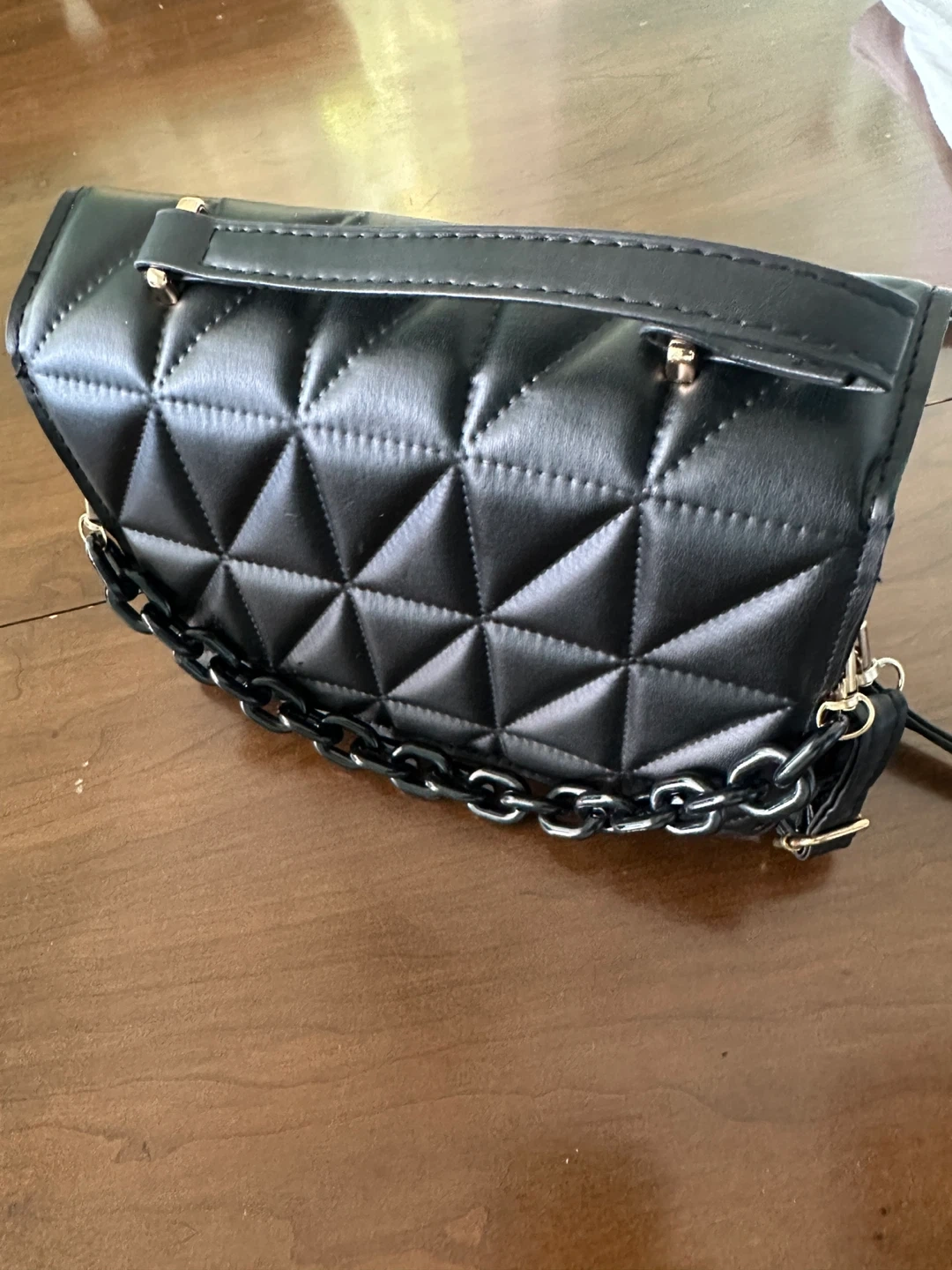 This is a stylish black quilted shoulder bag with a chain detail. It's in great condition and perfect for adding a touch of elegance to any outfit