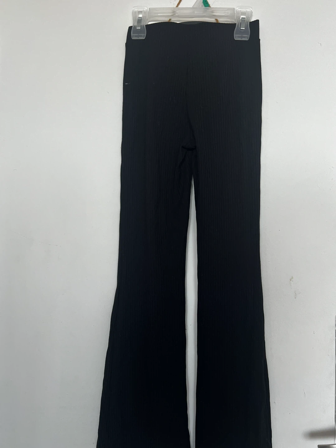 Selling a pair of black ribbed flare leggings. They're super comfy and in great condition! Perfect for lounging or dressing up
