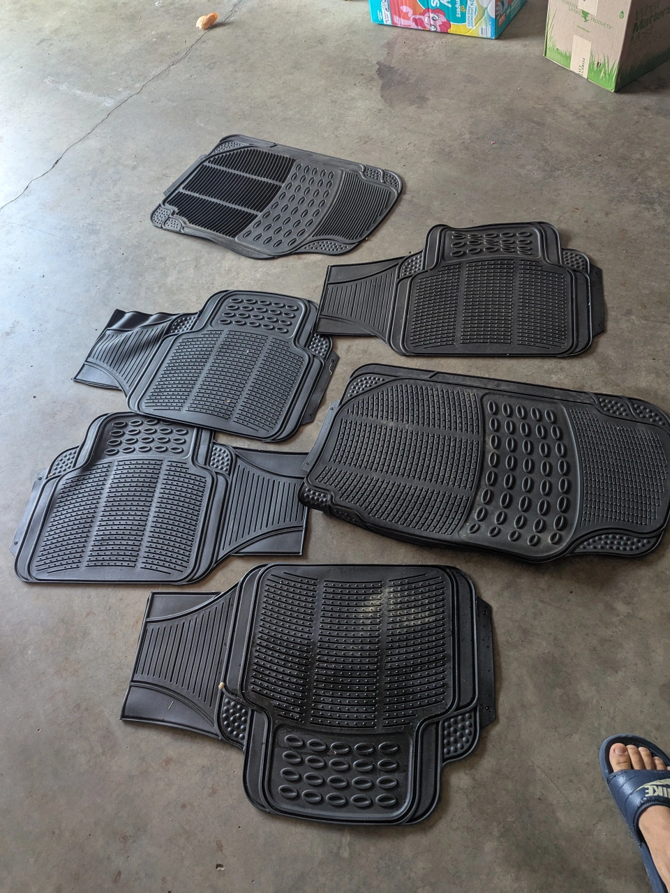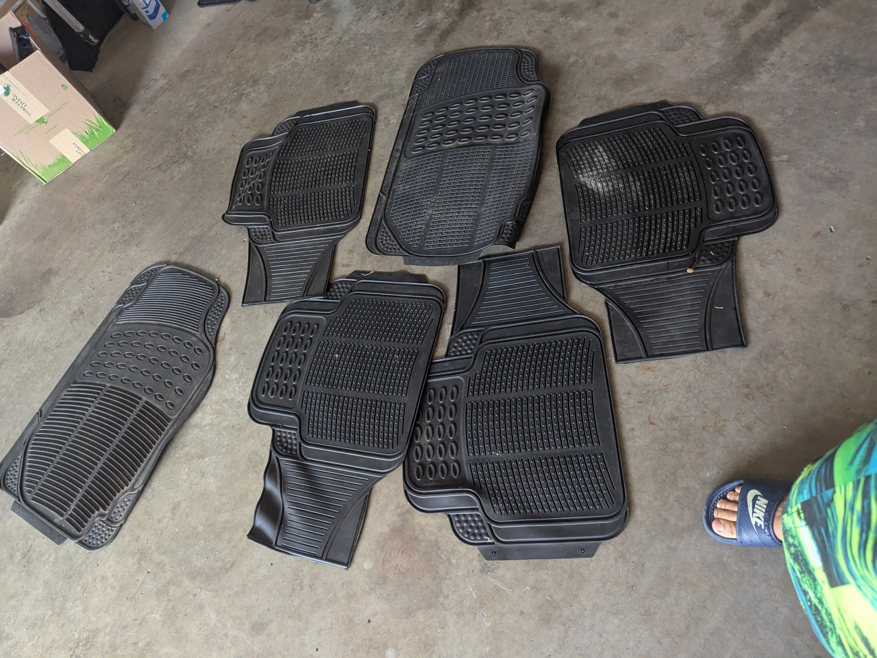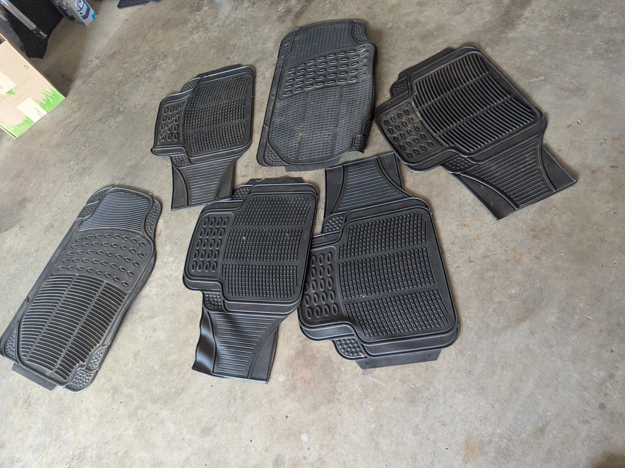 Selling a full set of black rubber car floor mats. They're used but still have plenty of life left! Great for protecting your car's interior from dirt and spills. Come grab them!