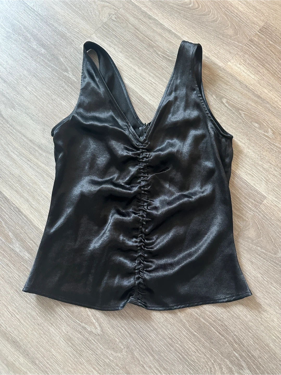 10Selling a ZARA black satin tank top. It's in great condition and has a lovely sheen. Perfect for a night out or dressing up a casual outfit! I haven't worn it Only $15