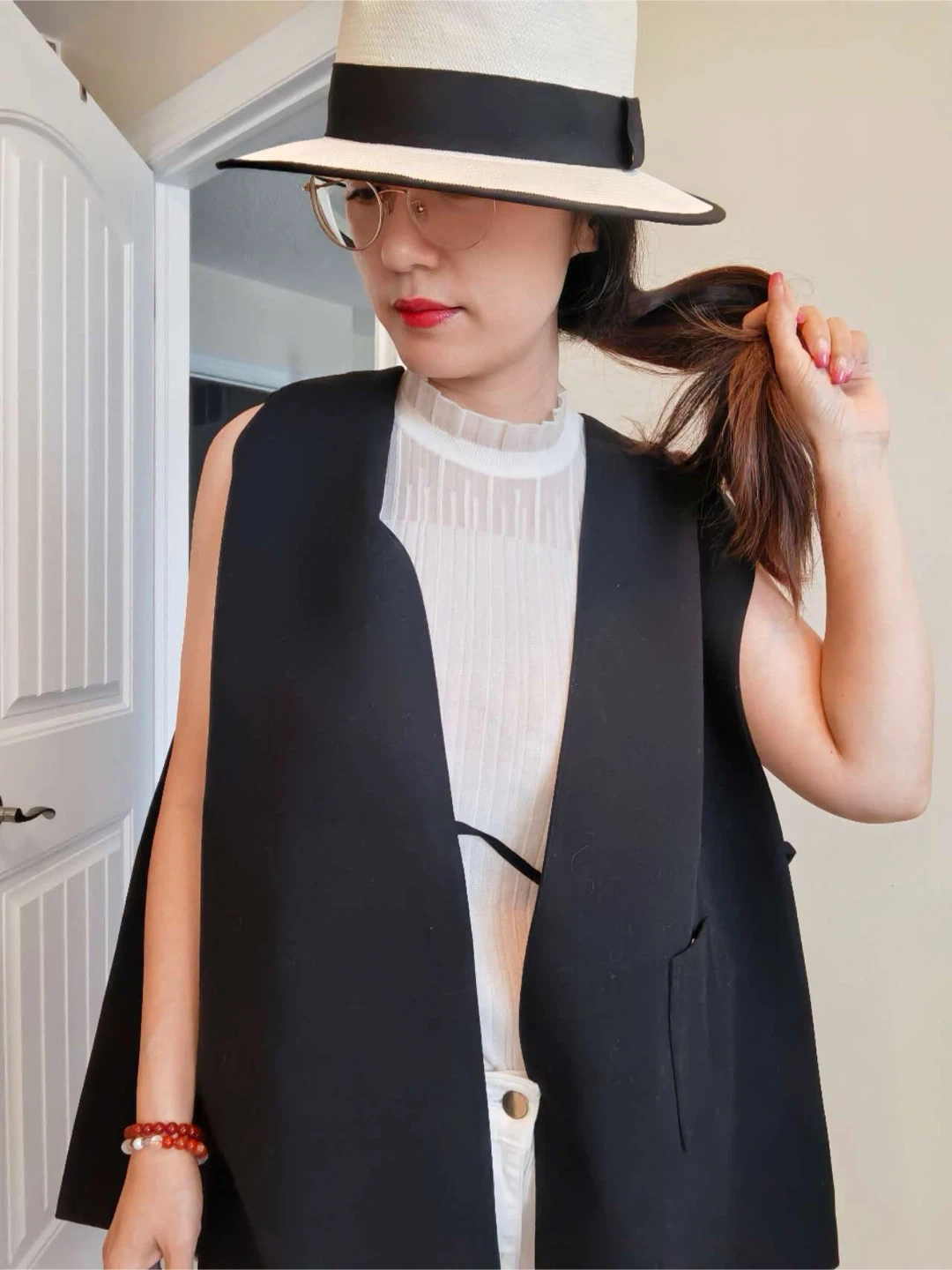 Selling a stylish black sleeveless vest. It's in great condition and perfect for layering or adding a touch of sophistication to any outfit