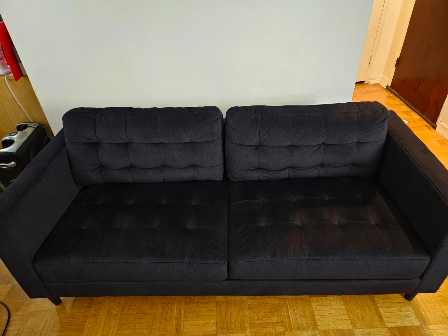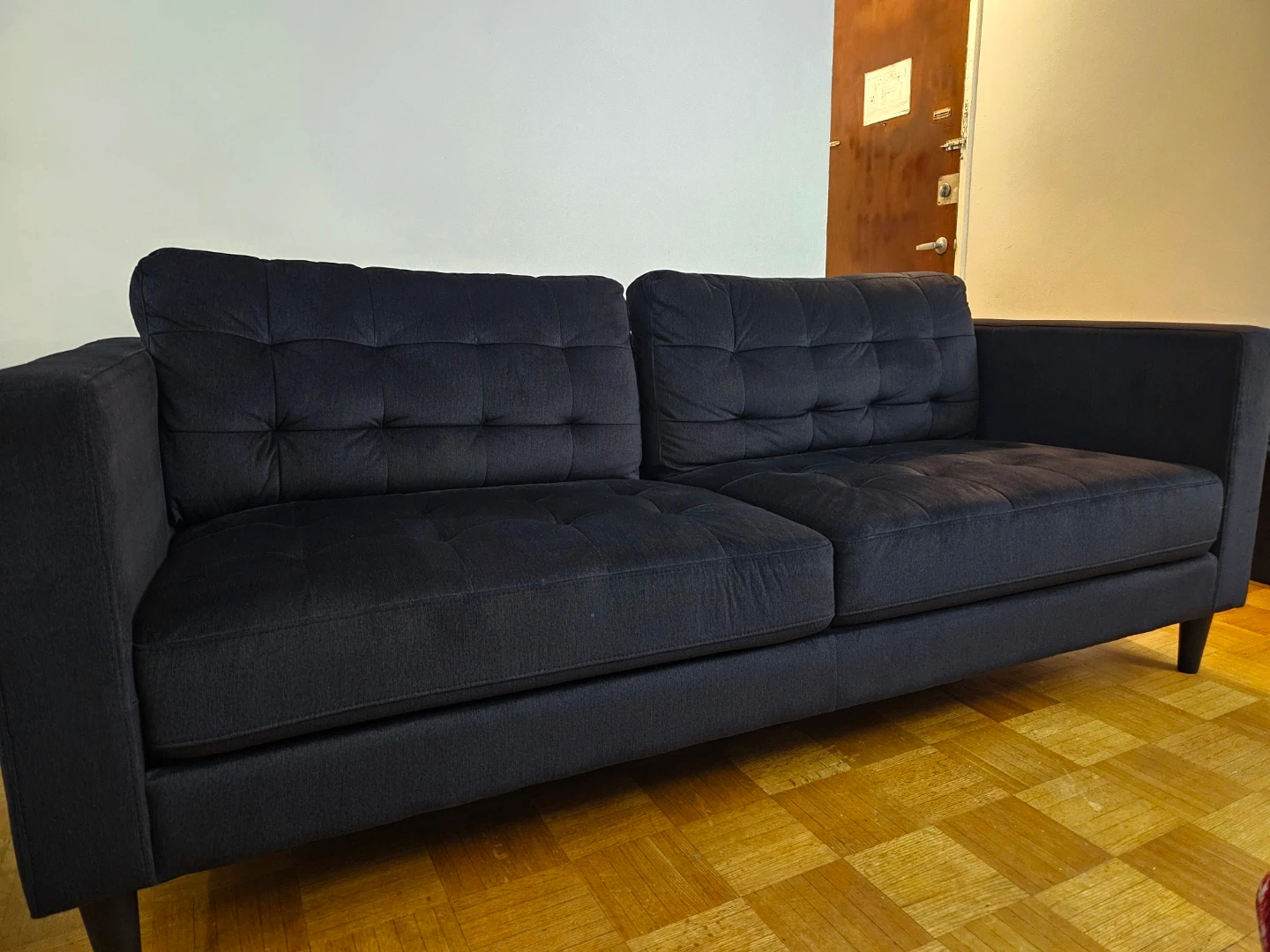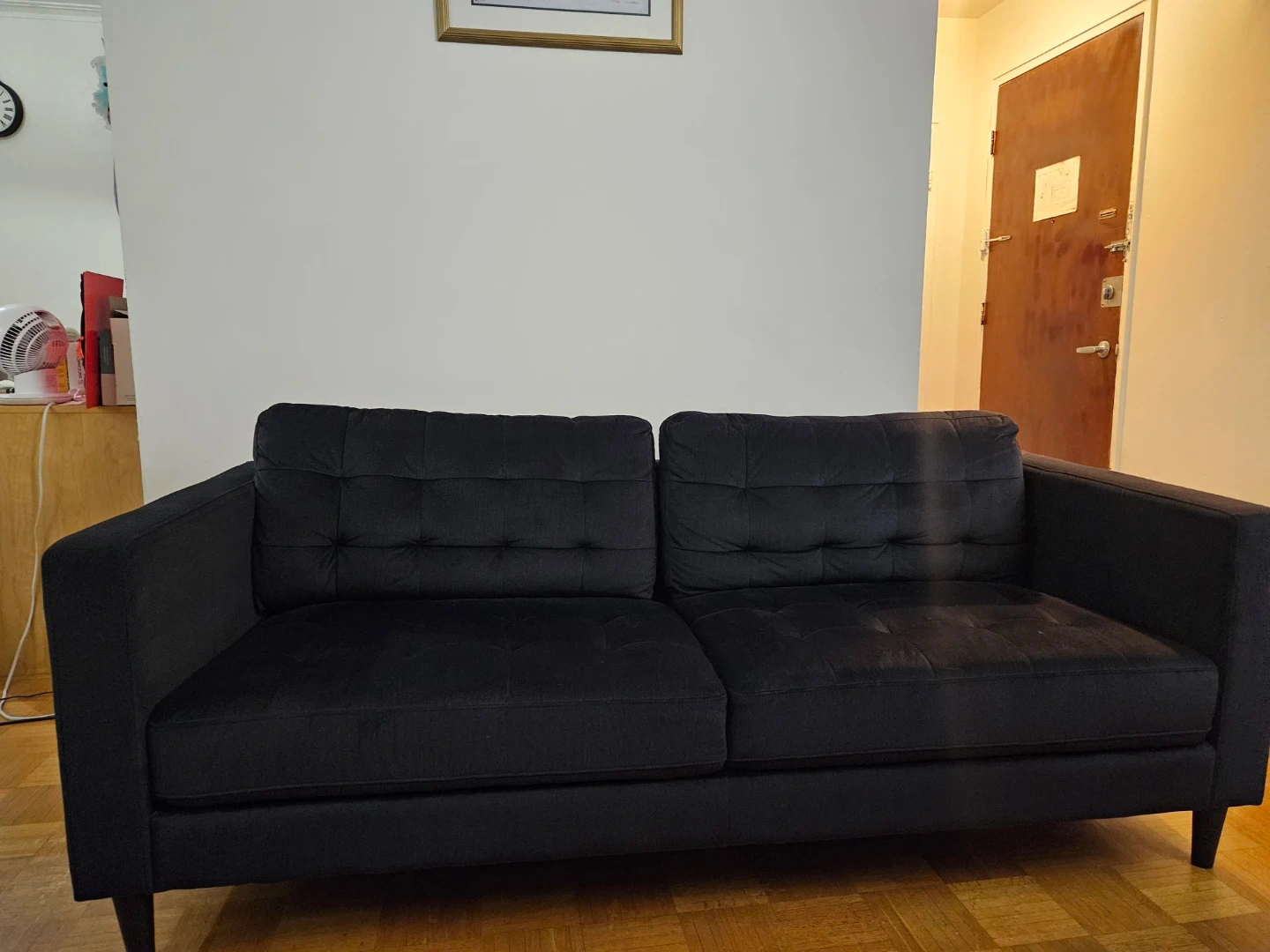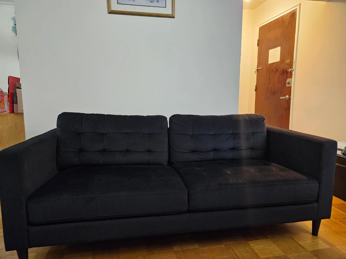 10Selling a comfy black sofa. It's in great condition and ready for a new home! This sofa originally retails for $1200 and we have lowered the price down to $750. This sofa is soft and is a comfy 4 seater. The reason we are selling this a sofa is because we have gotten a new couch. Price negotiable.