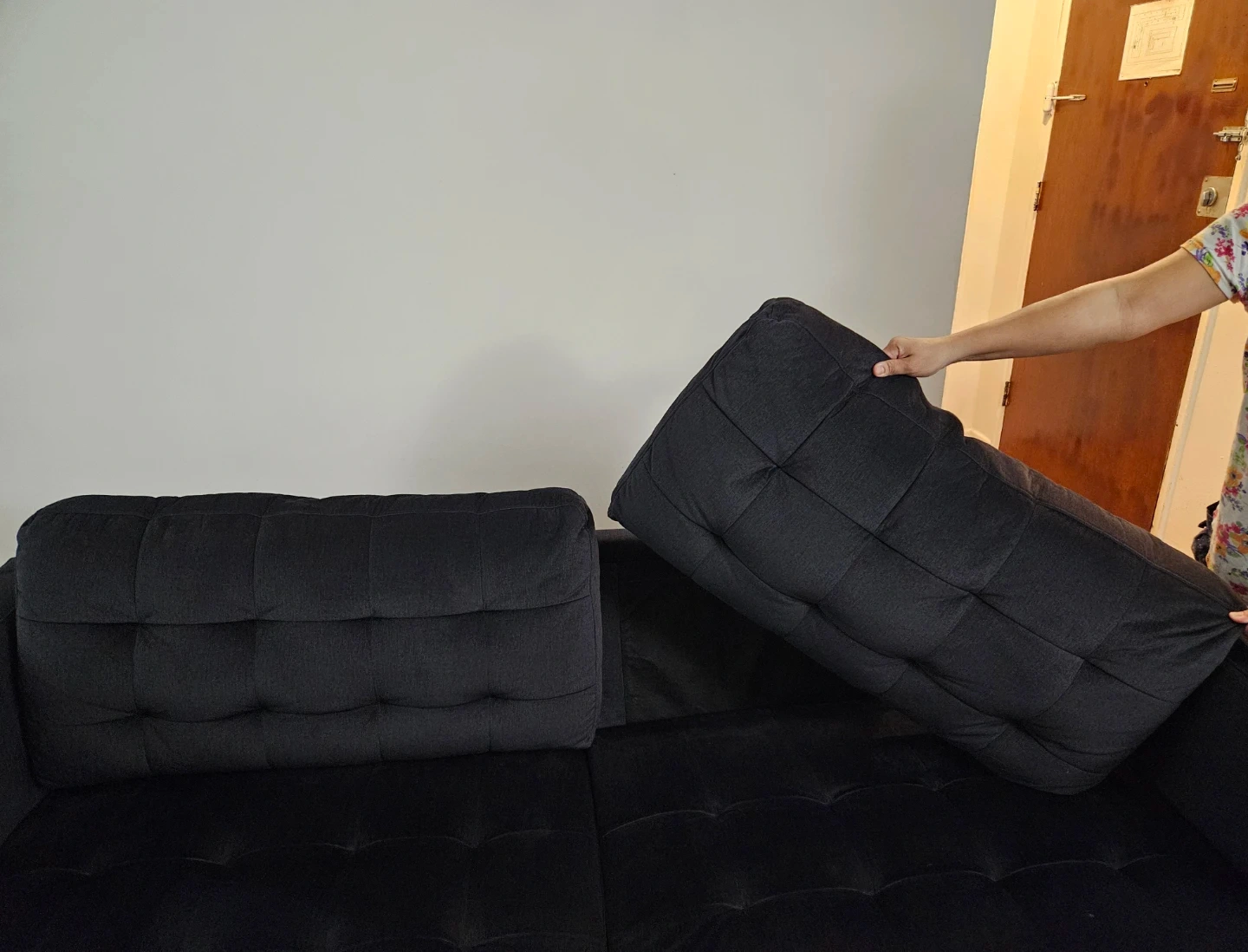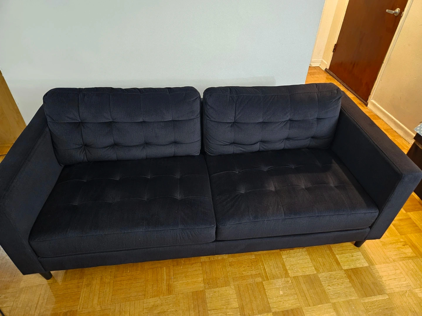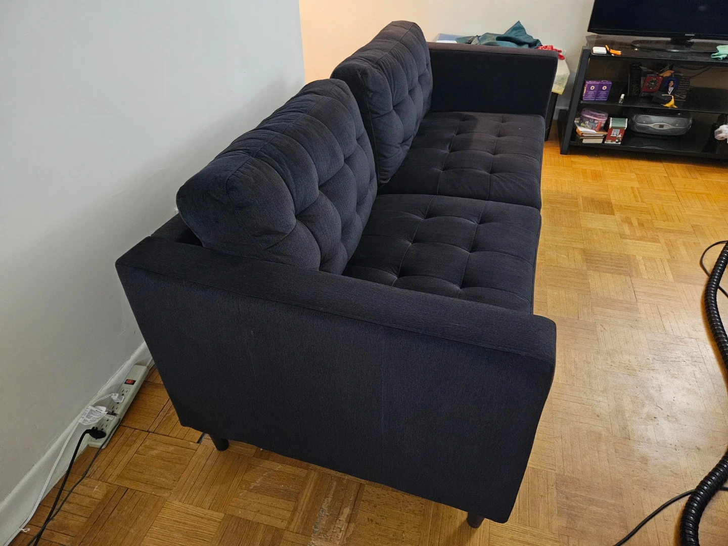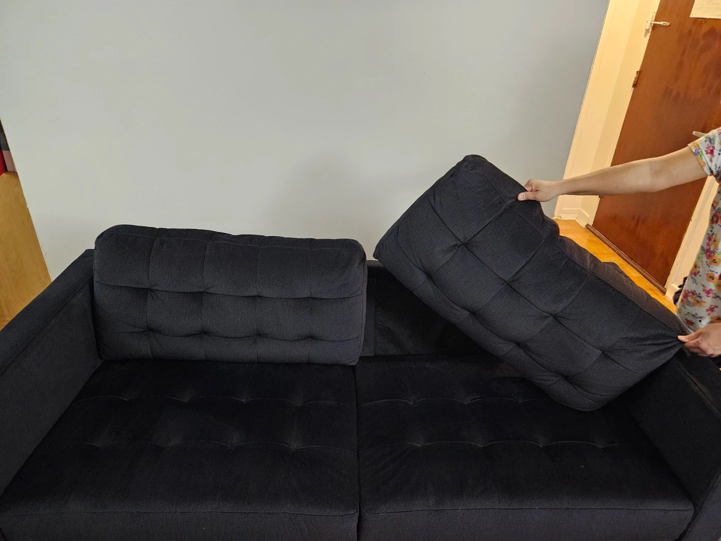 10Selling a comfy black sofa. It's in great condition and ready for a new home! This sofa originally retails for $1200 and we have lowered the price down to $750. This sofa is soft and is a comfy 4 seater. The reason we are selling this a sofa is because we have gotten a new couch. Price negotiable.