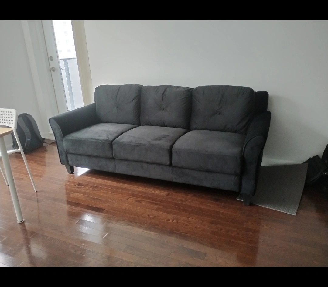 39This is a beautiful black 3 seater sofa. Bought about a year ago. We have always used it with a cover as seen in the last picture. Selling this as we need to downsize. Currently retails for CAD 750 on Wayfair. CAD 375 OBO. Pet free and smoke free home. Pickup only.