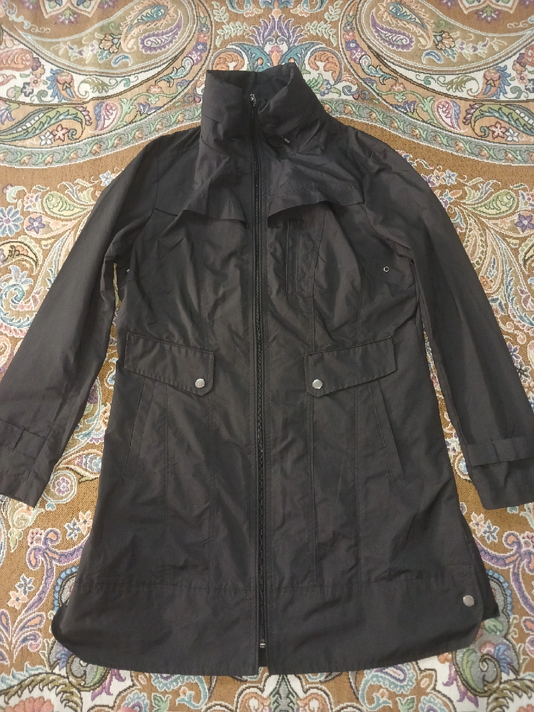 A stylish black jacket perfect for spring or fall weather! It features a full zipper, pockets, and a high collar for extra warmth and protection from the elements. A versatile addition to any wardrobe and it's water proof and brand new