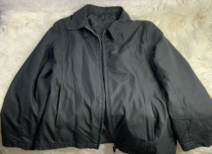 25Black spring jacket Large size good condition used twice only Very nice and comfortable Cash only Check for more listing. Buy more more good deals