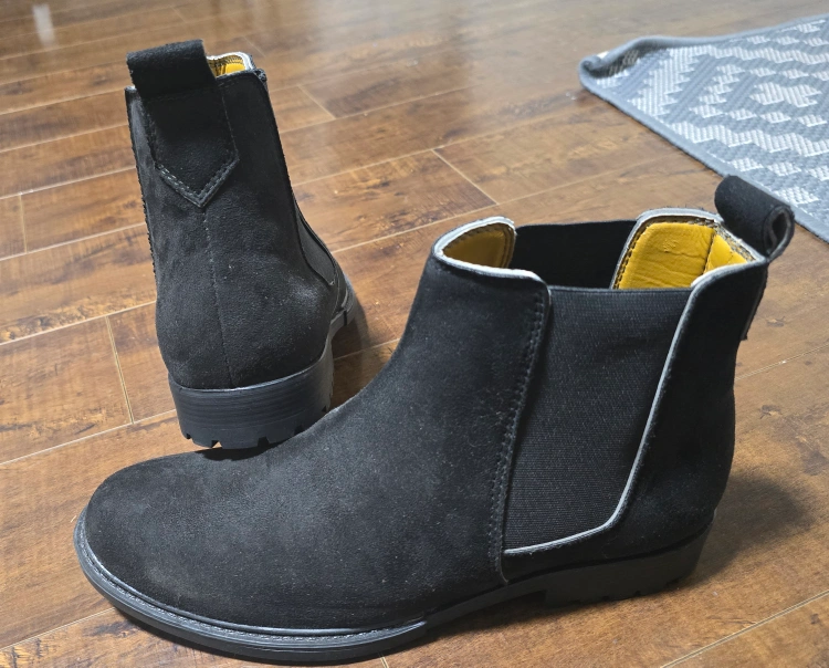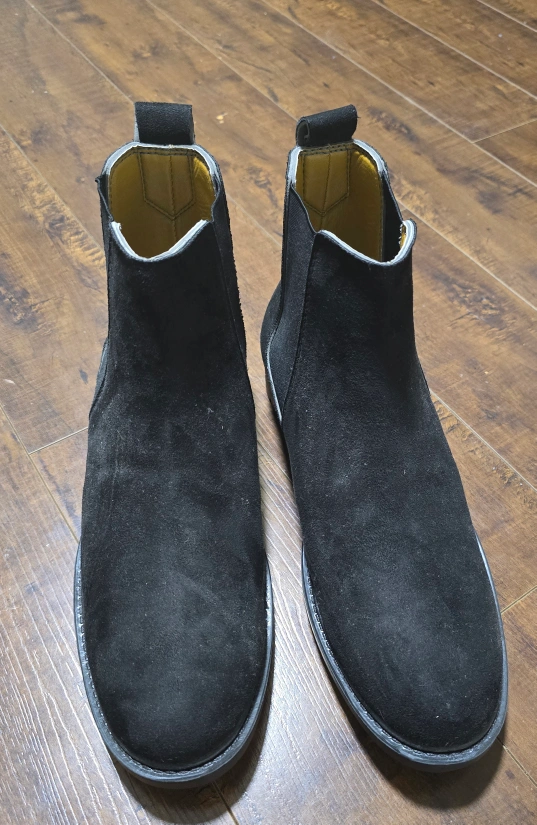 65Black suede Chelsea boots. Size 42. Elastic sides, pull-on style. Good condition.