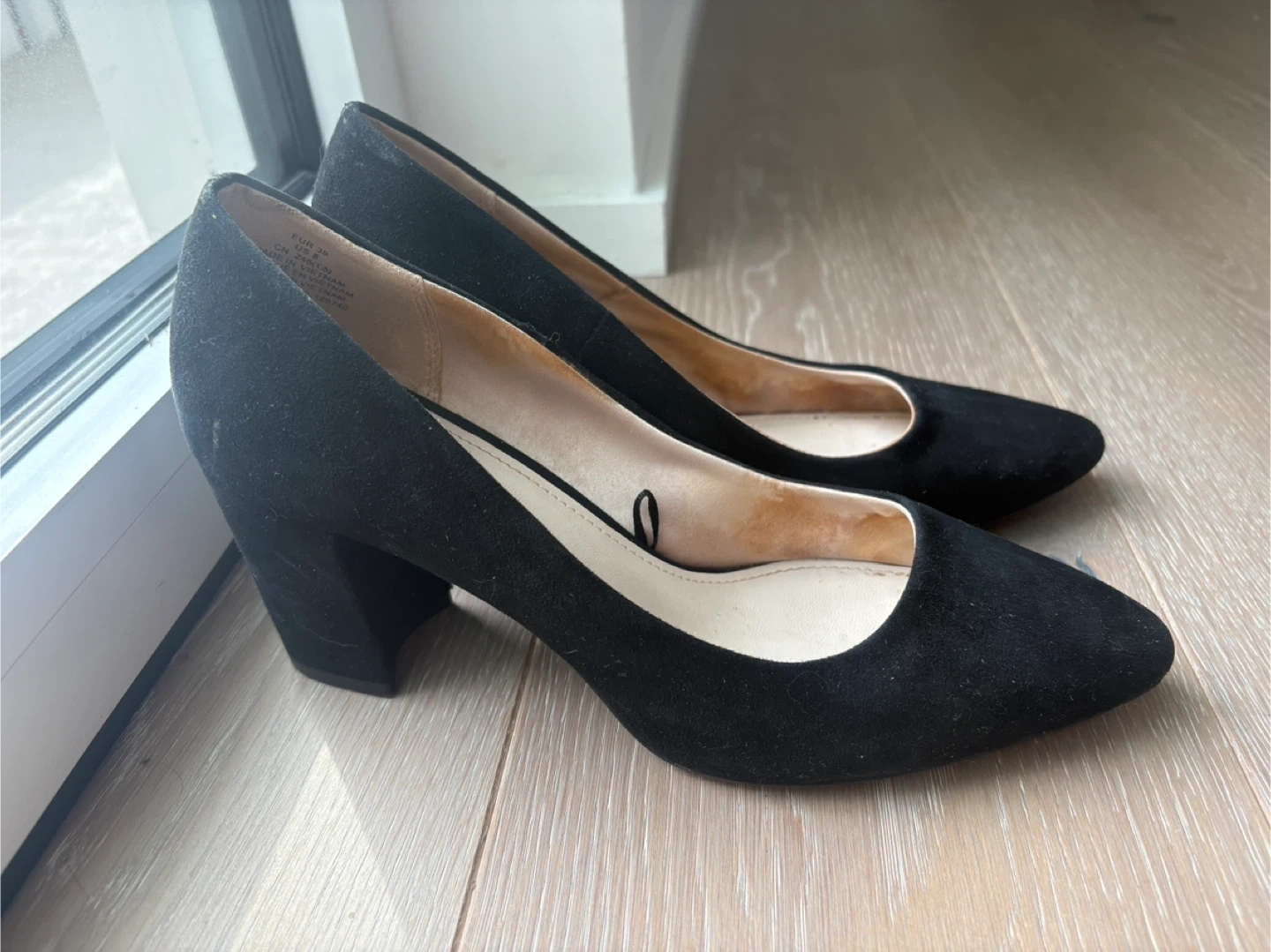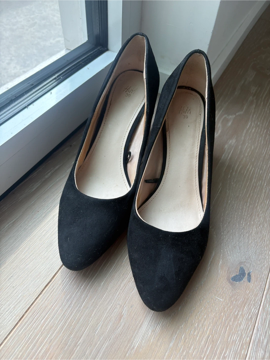 Black suede heels in size 39. 3 inch heels. Pick up in the Beaches at Queen and Victoria Park.