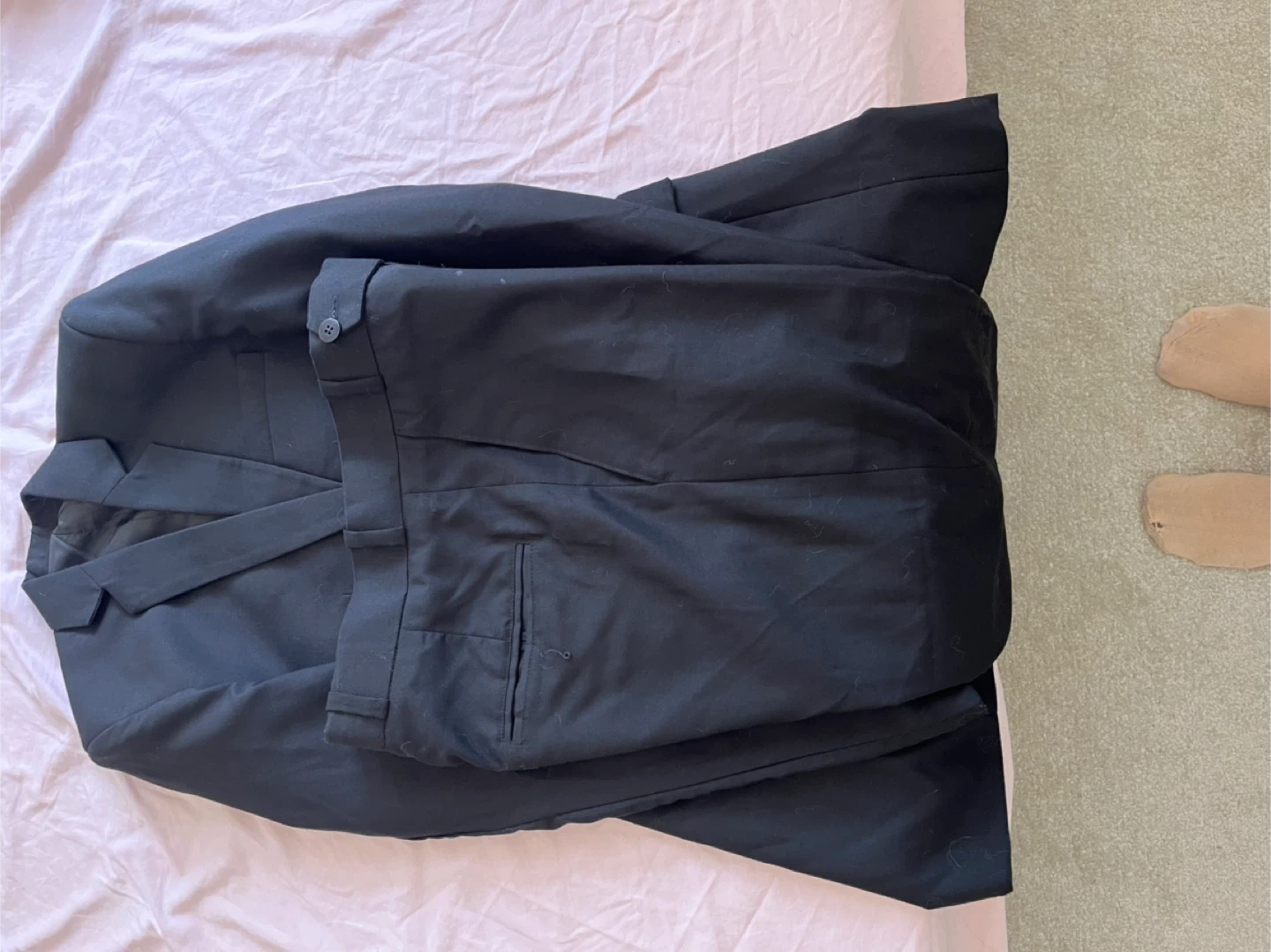 Selling a very gently used black suit set. It's in great condition and perfect for any occasion! The material is a sleek black colour. Feel free to reach out if you're interested! Size 13-14 yrs