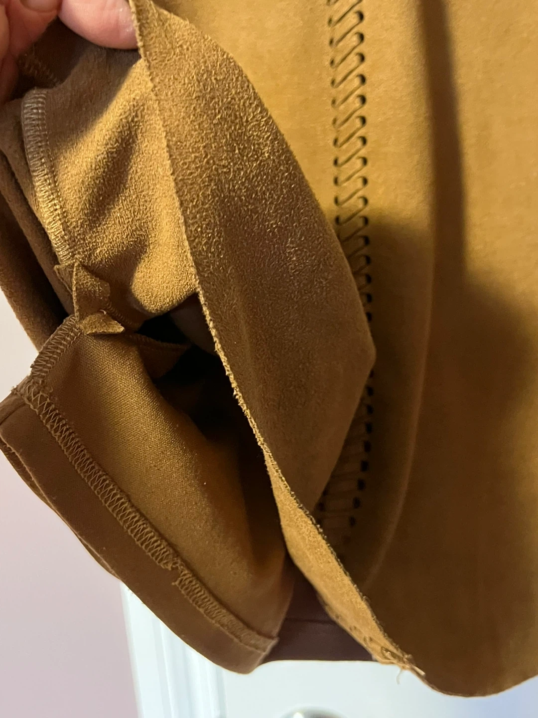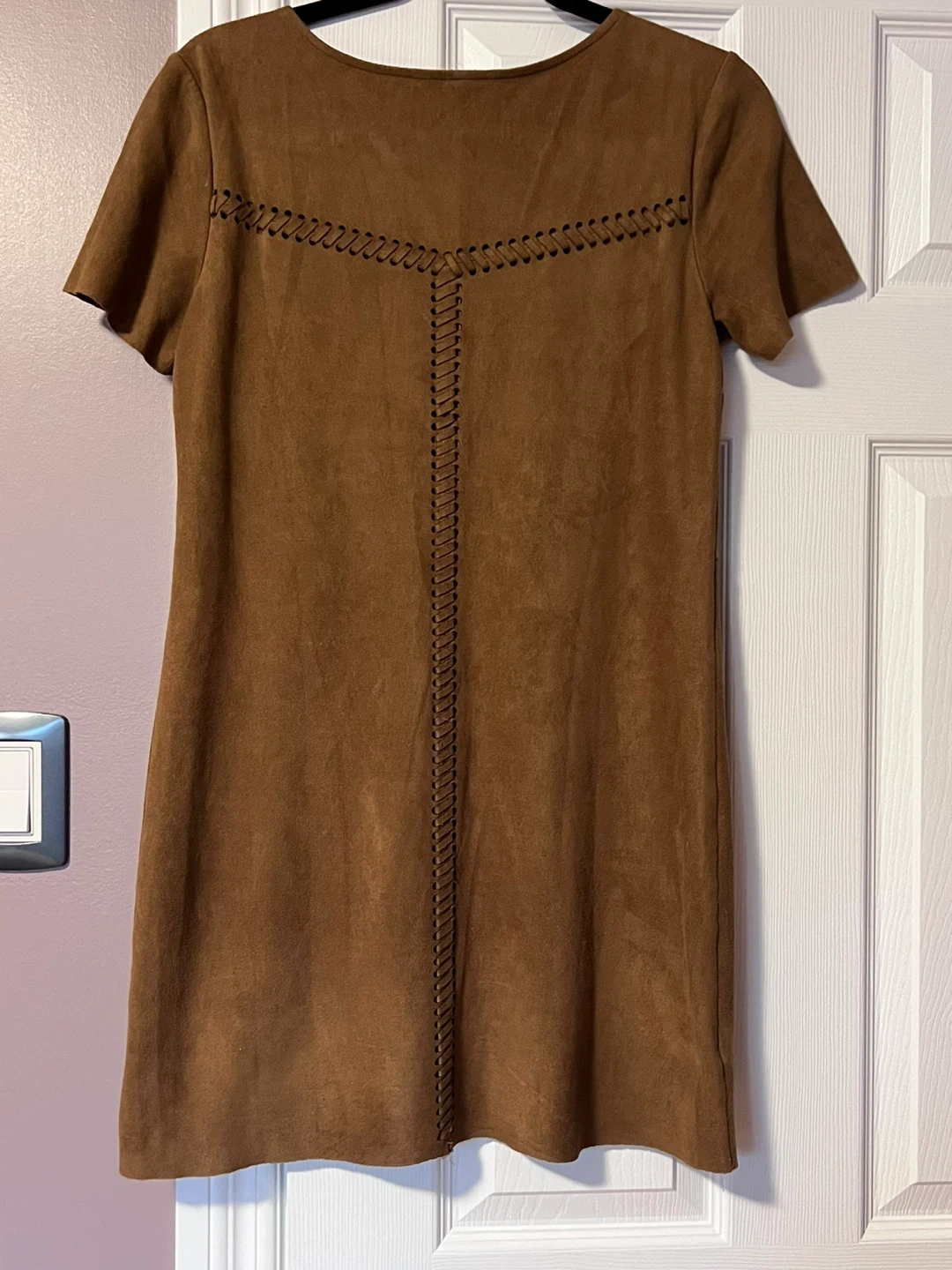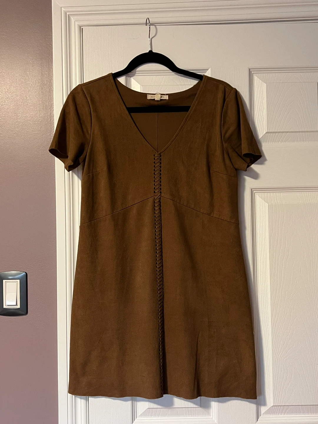 46Selling a cute brown dress from Black Swan! It's a size 8 and in great condition. The material feels like suede, and it has a unique design down the front and back. Perfect for a casual day out or a fun evening with friends