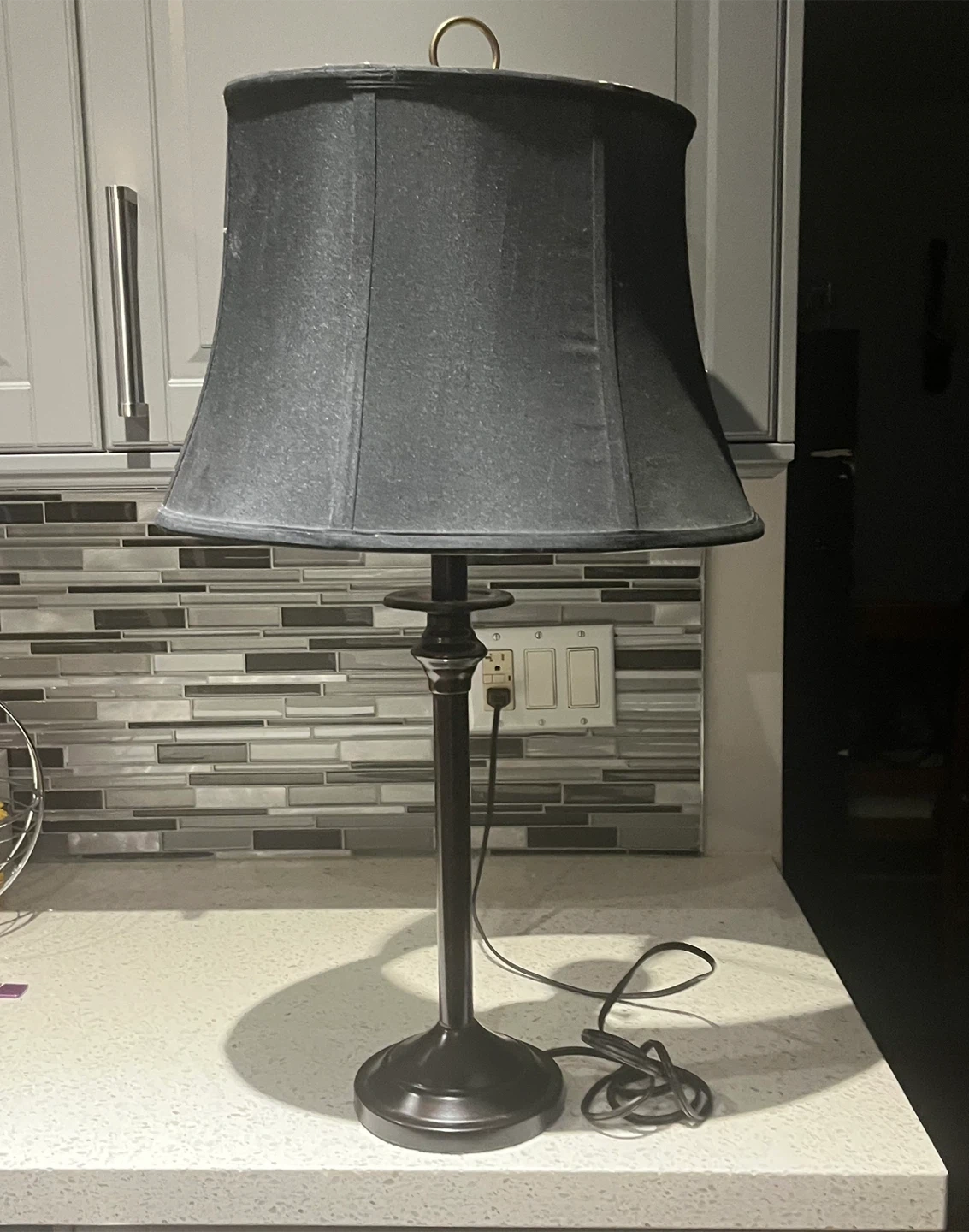 30Selling a black table lamp in good condition. It has a classic design that would look great in any room. The lamp features a dark shade and a sturdy base. Perfect for adding a touch of elegance to your home!