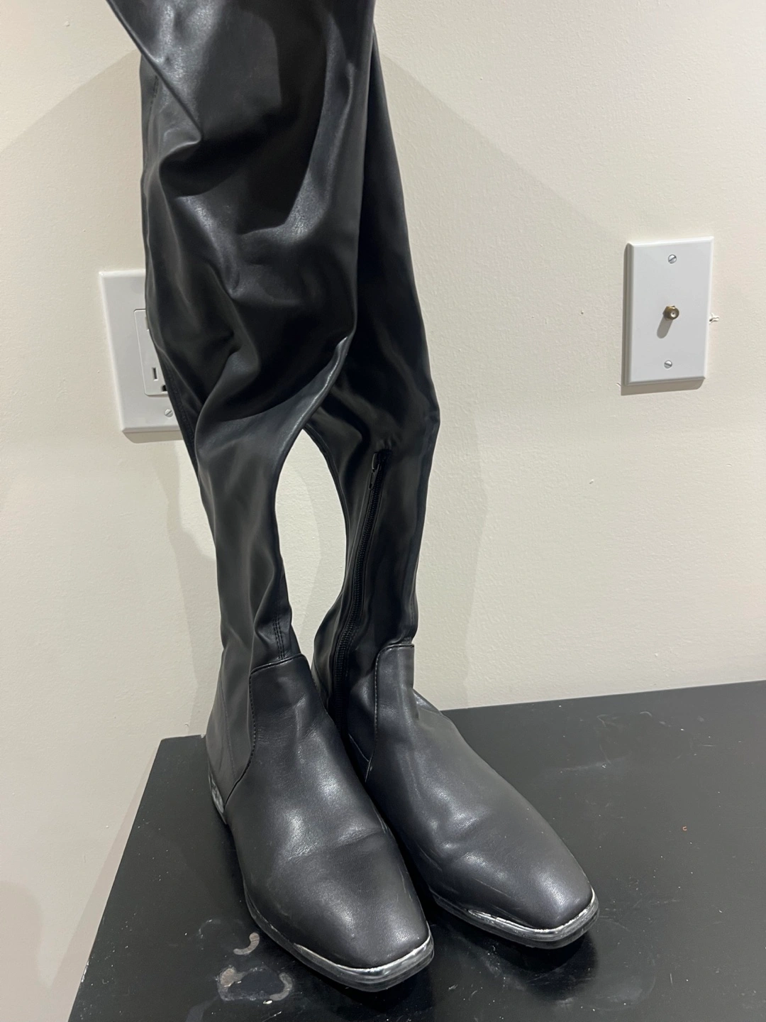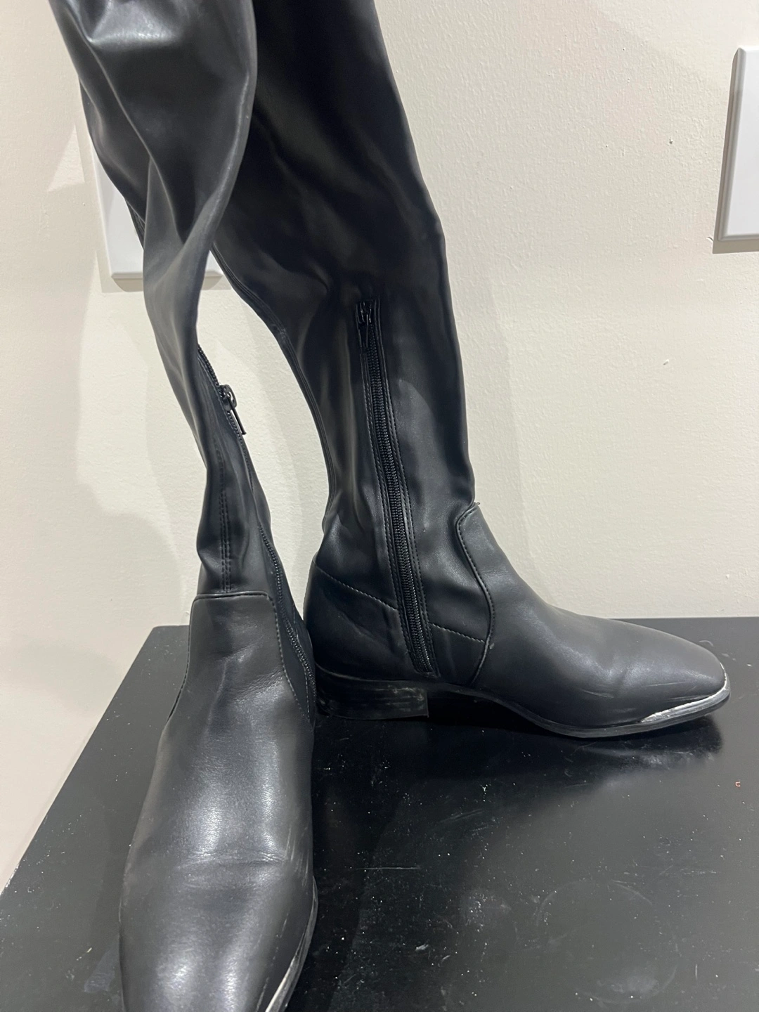 Selling a pair of black thigh-high boots! They're in great condition and would be a stylish addition to your wardrobe
