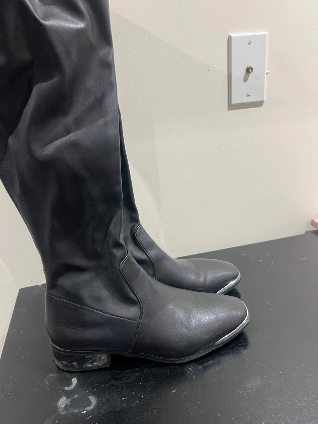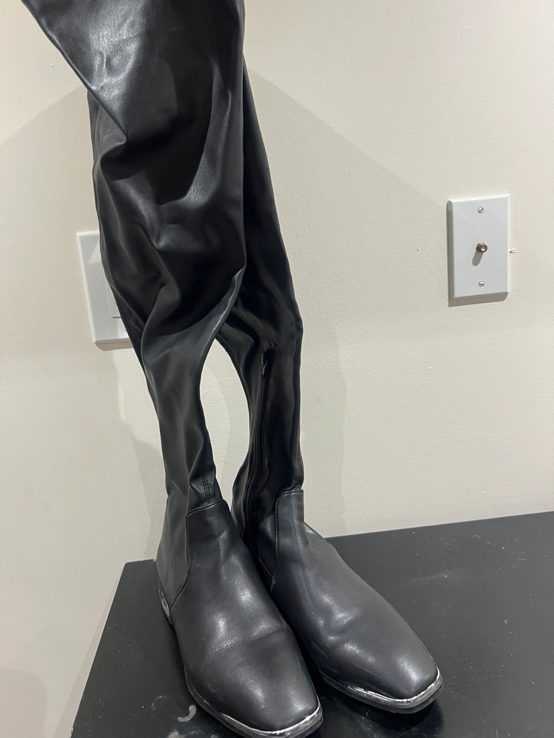 Selling a pair of black thigh-high boots! They're in great condition and would be a stylish addition to your wardrobe