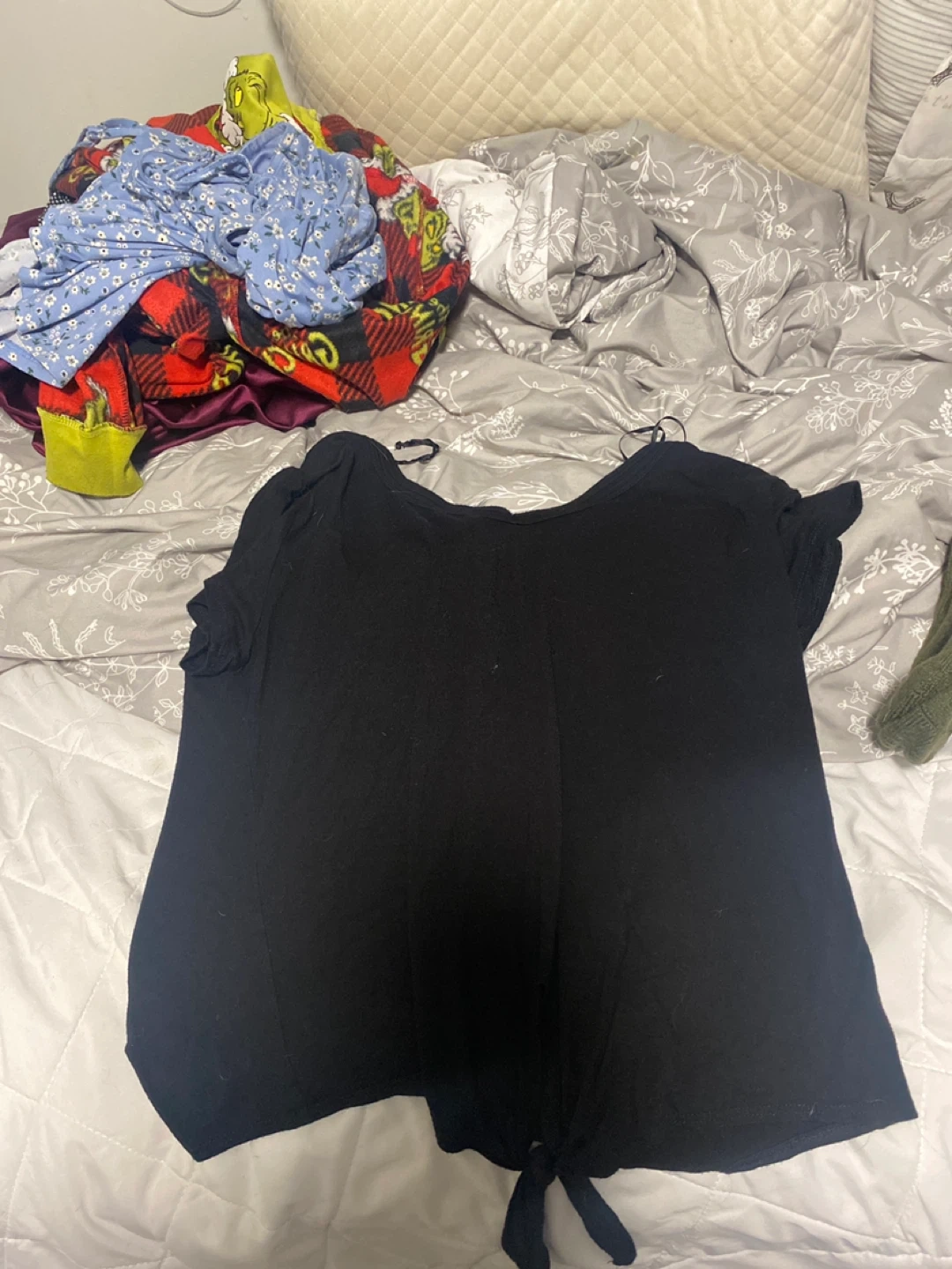10Here's a cute black top with a tie-front detail! It's in good condition and ready for a new home